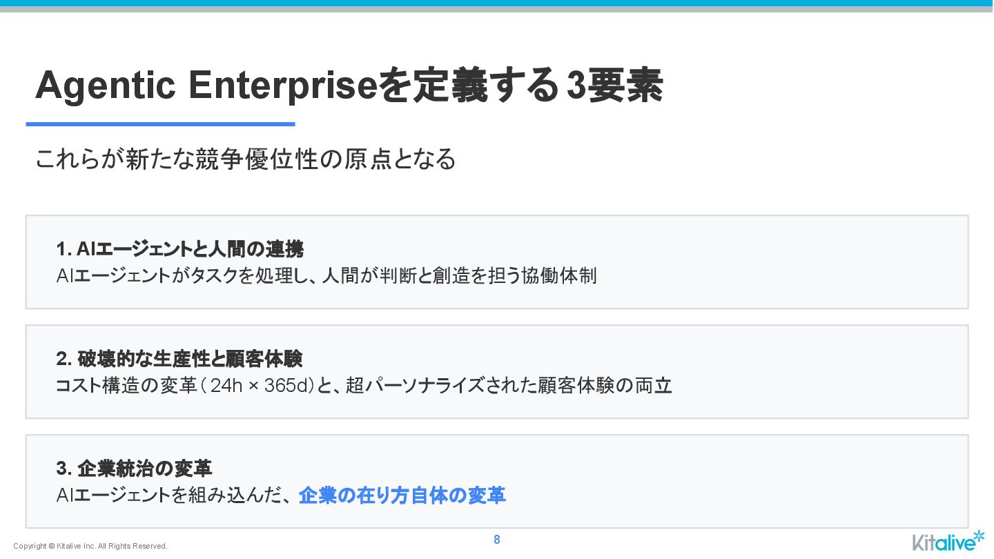 Copyright © Kitalive Inc. All Rights Reserved. Agentic Enterpriseを定義する 3要素