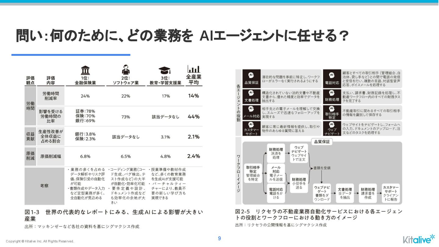 Copyright © Kitalive Inc. All Rights Reserved. 問い:何のために、どの業務を AIエージェントに任せる? 9