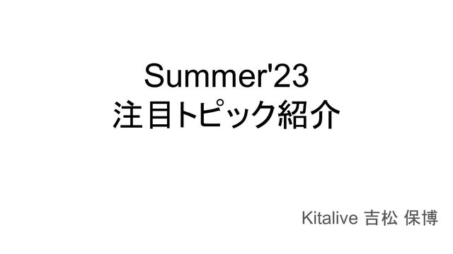 Summer'23 注目トピック紹介 Kitalive 吉松 保博