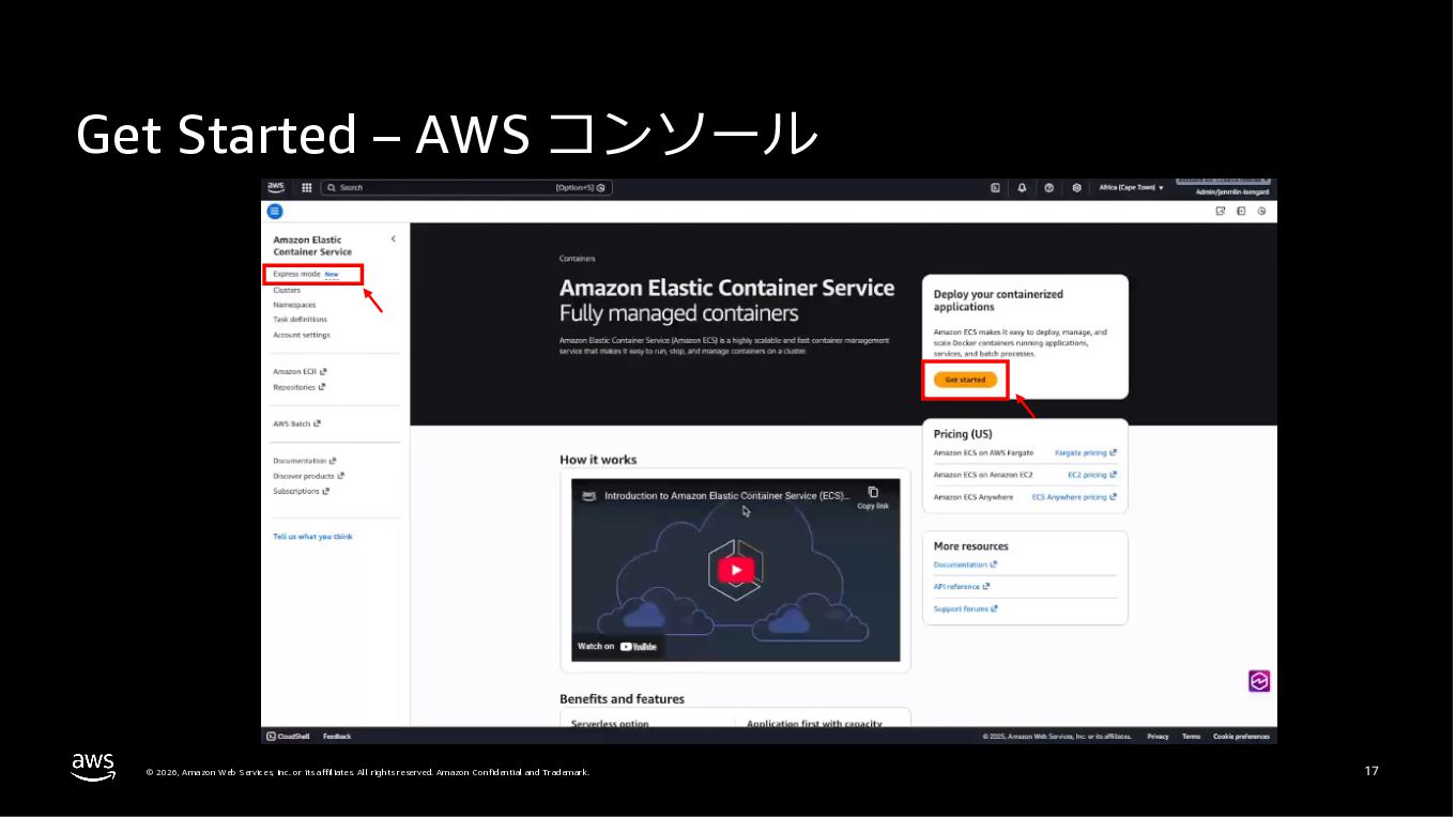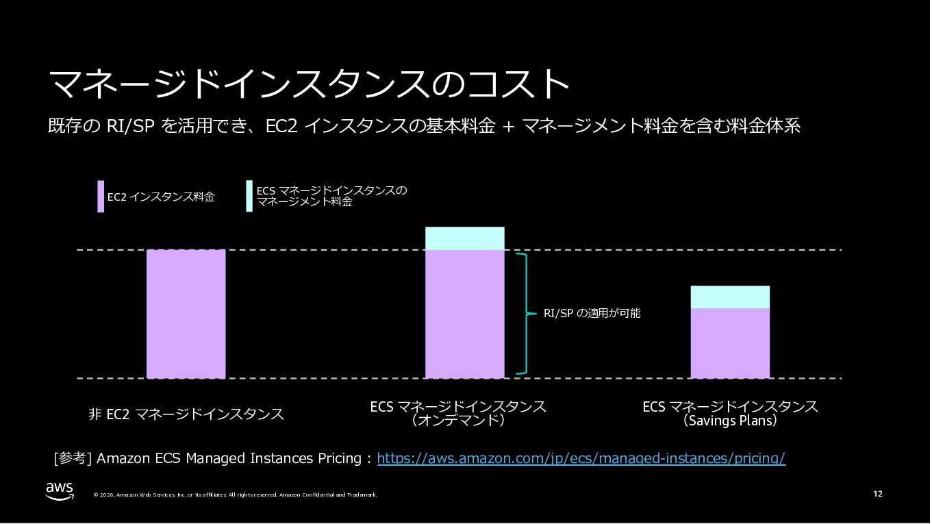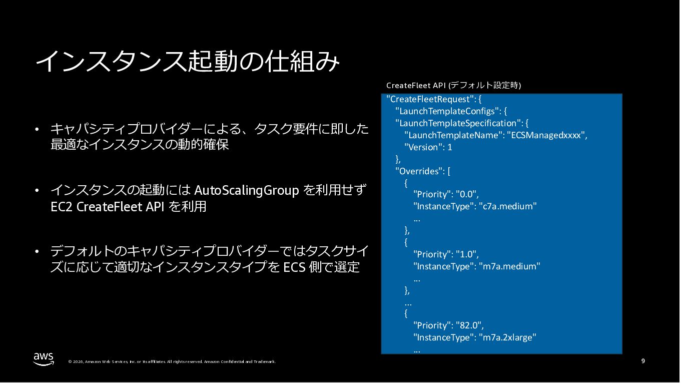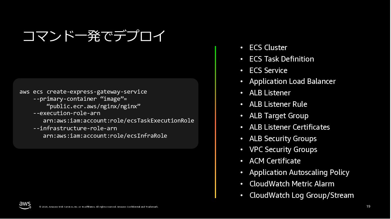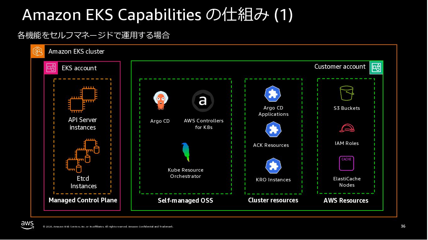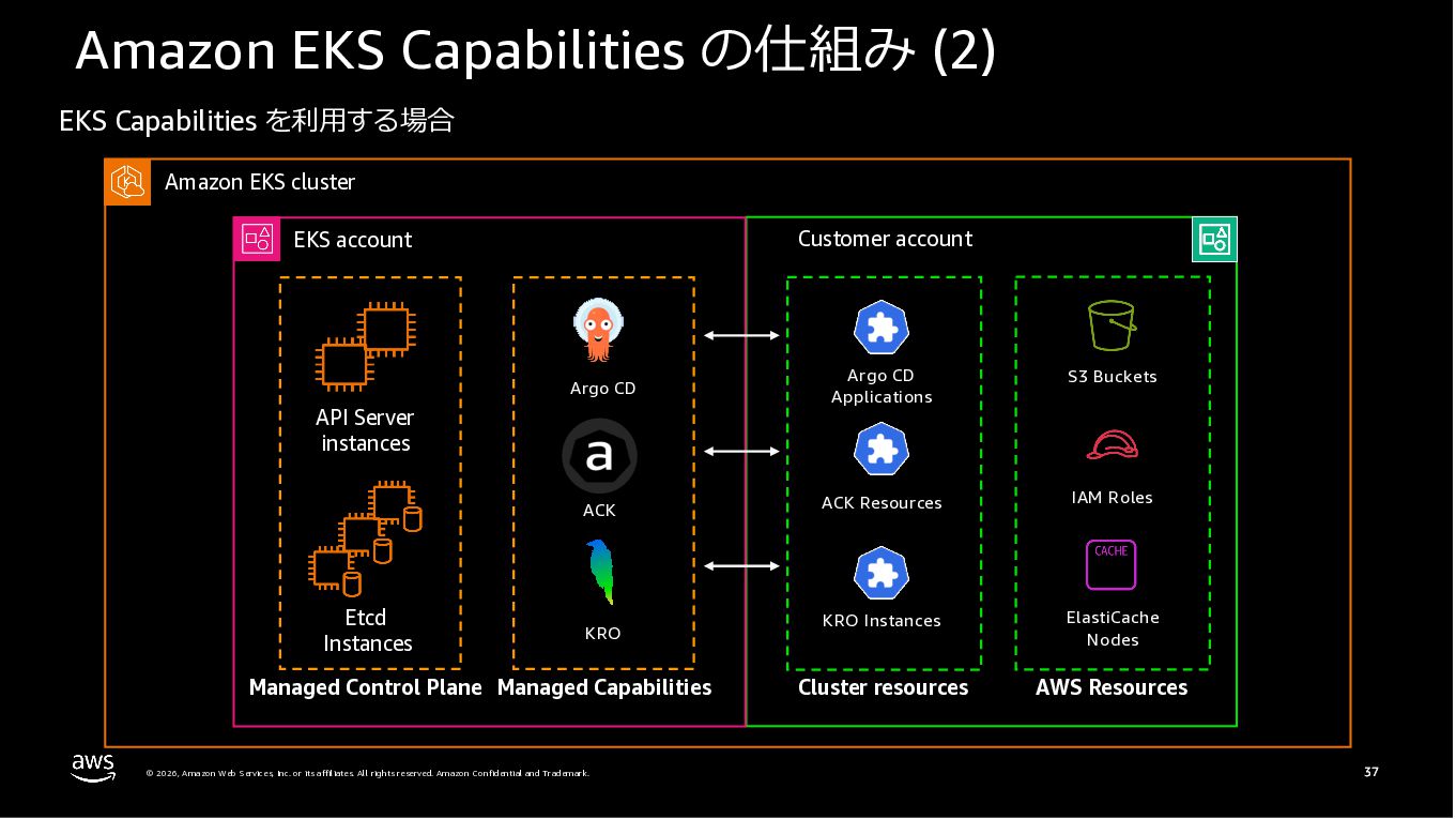 Amazon ECS と Amazon EKS の最新機能、そして MCP(Model Context Protocol)サーバーとの連携による新たな活用シーンについて解説しました。ECS Managed Instances では Fargate と EC2 の利点を組み合わせた第3の選択肢が提供され、GPU インスタンスや大容量メモリへの対応、AWS による自動的なインフラ管理と最適化を実現しています。また、ECS Express Mode ではコンテナイメージと IAM ロールのみでベストプラクティスに基づいた本番環境を即座に構築でき、EKS Auto Mode では Kubernetes クラスター全体のインフラ管理が自動化されることで運用負荷を大幅に軽減します。さらに、フルマネージド型の MCP サーバーにより、AI コーディングアシスタントとの連携を通じて開発効率の向上とトラブルシューティングの迅速化が可能となりました。