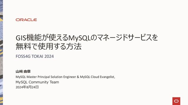 MySQLのGIS機能の概要と、GIS機能が使えるMySQLのマネージドサービスを無料で使用する方法、HeatWave GenAIなどについて説明しています。