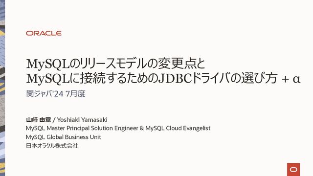 「MySQLの新しいリリースモデル」と「MySQLに接続するためのJDBCドライバの選び方」などについて説明しています。