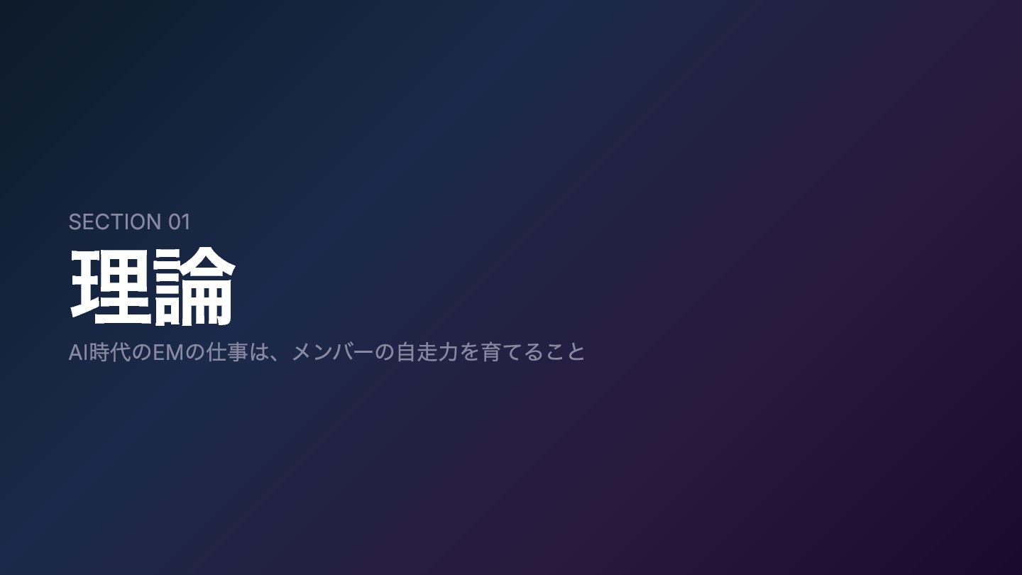 SECTION 01 理論 AI時代のEMの仕事は、メンバーの自走力を育てること
