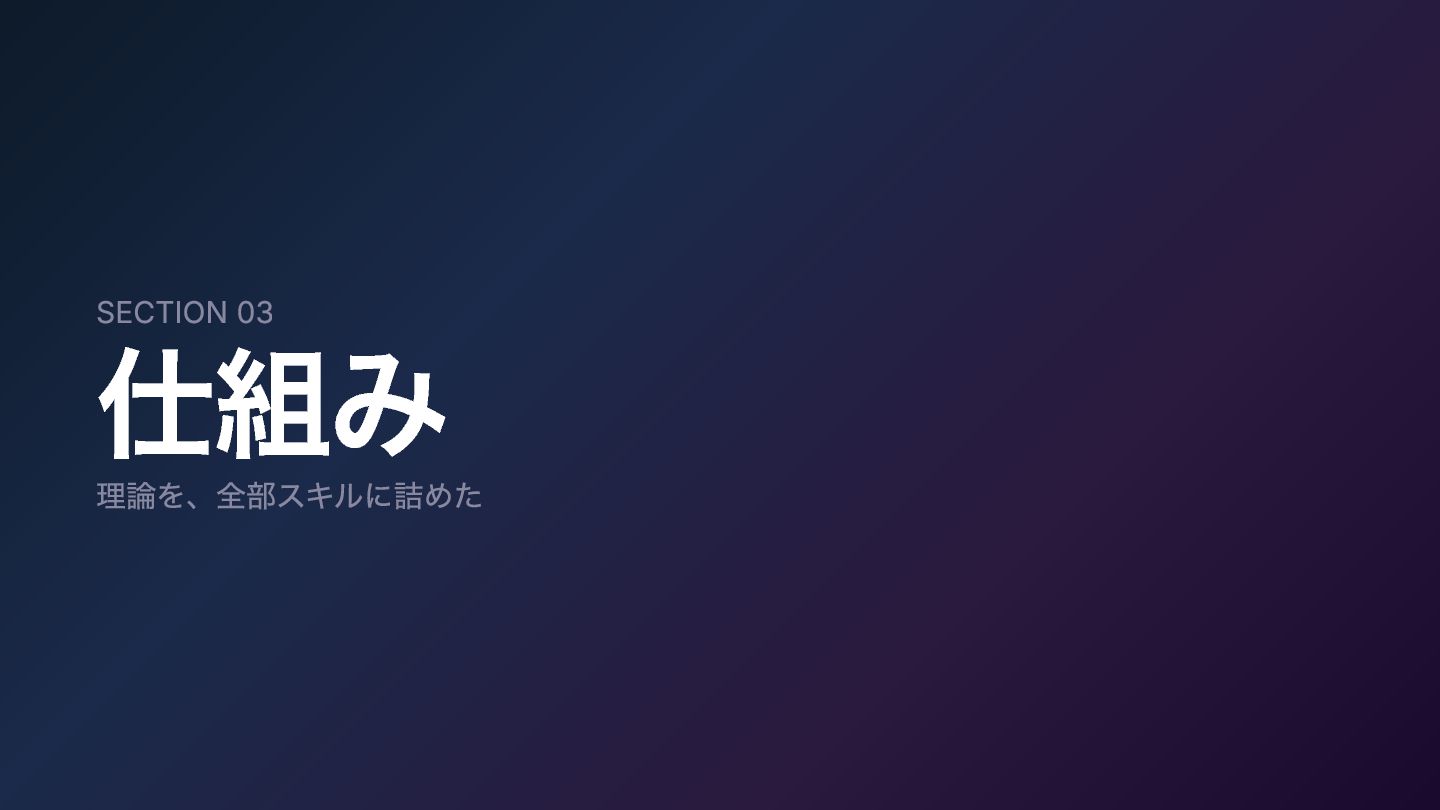 SECTION 03 仕組み 理論を、全部スキルに詰めた