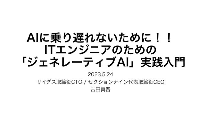 2023.5.24 PE-BANKセミナー AIに乗り遅れないために!!ITエンジニアのための「ジェネレーティブAI」実践入門 で話した資料です。