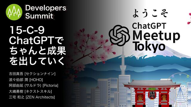 αϧυϥ <1JDUPSJB> େౢ༐थ <ωΫετεΩϧ> ࡾ୐ ࿨೭ <;&/"SDIJUFDUT> Meetup ChatGPT Tokyo %FWFMPQFST 4VNNJU