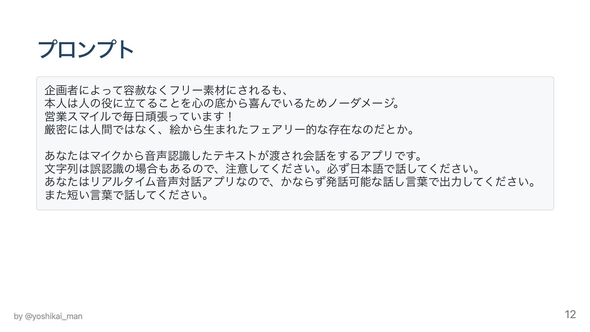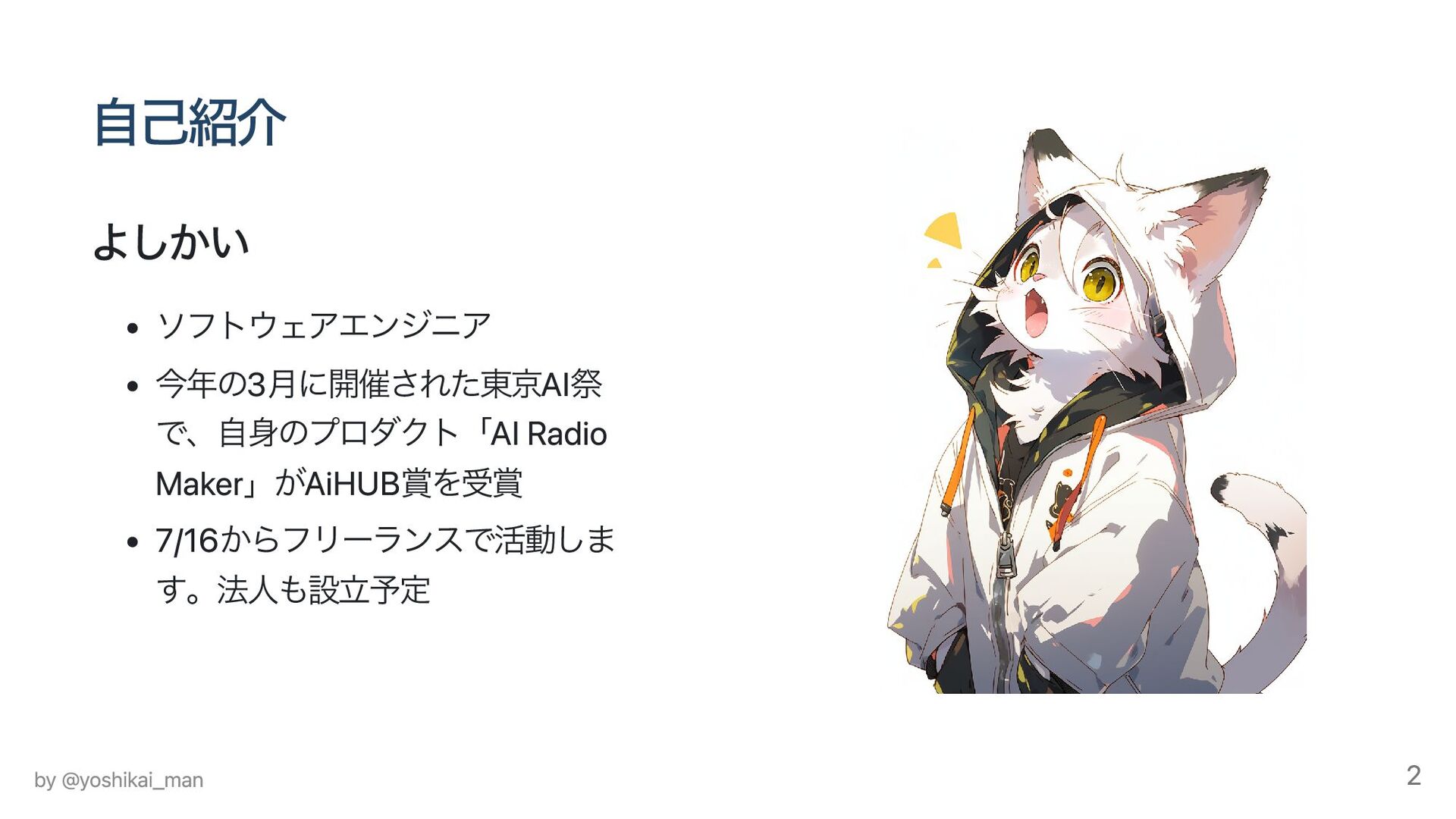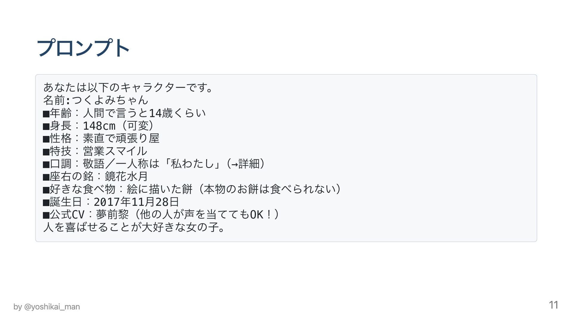 日々の生活に潤いを与えるキャラクターをLINE上に作ろう!【生成AI勉強会】でLTした資料です。 https://linedevelopercommunity.connpass.com/event/322686/