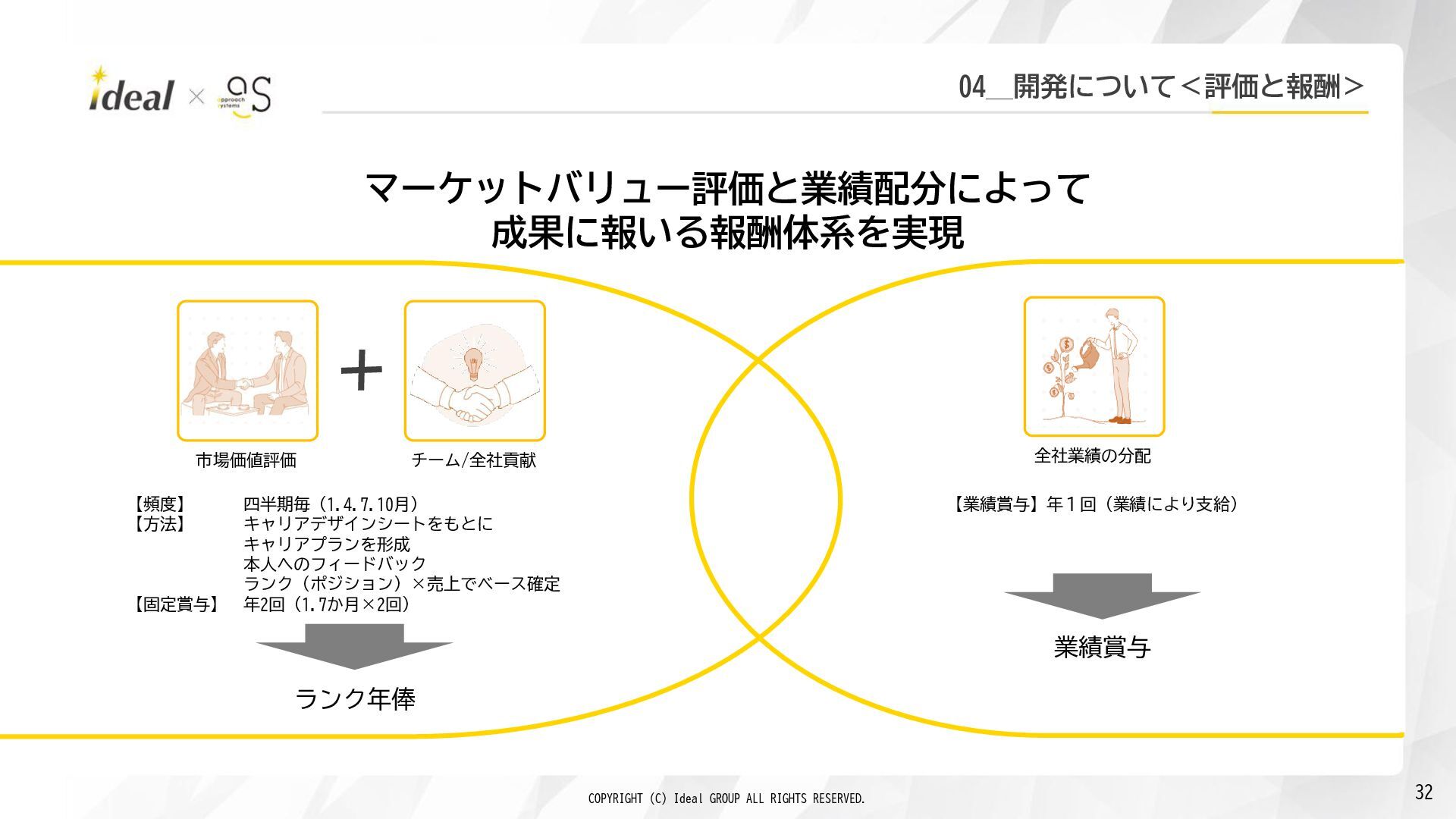 24. COPYRIGHT (C) Ideal GROUP ALL RIGHTS RESERVED. 32 04_開発について<評価と報酬> マーケットバリュー評価と業績配分によって
