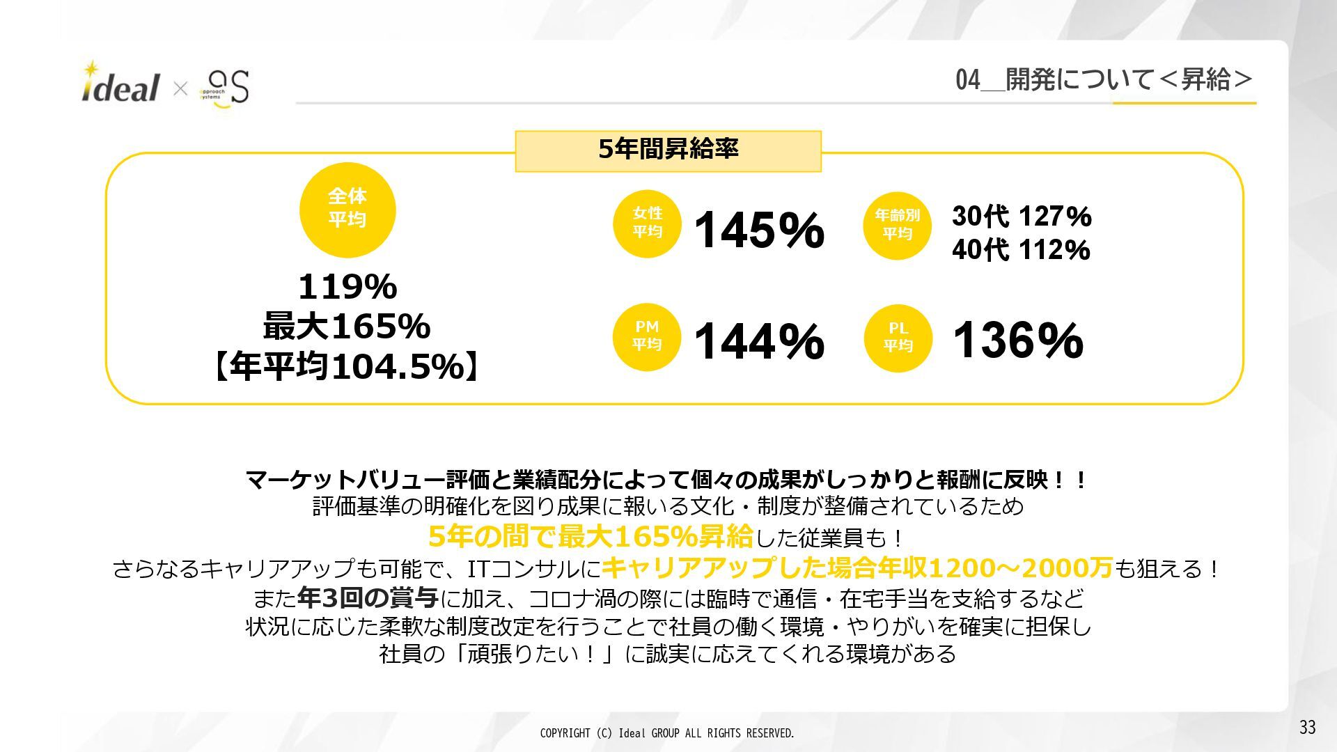 25. COPYRIGHT (C) Ideal GROUP ALL RIGHTS RESERVED. 33 04_開発について<昇給> マーケットバリュー評価と業績配分によって個々の成果がしっかりと報酬に反映!!