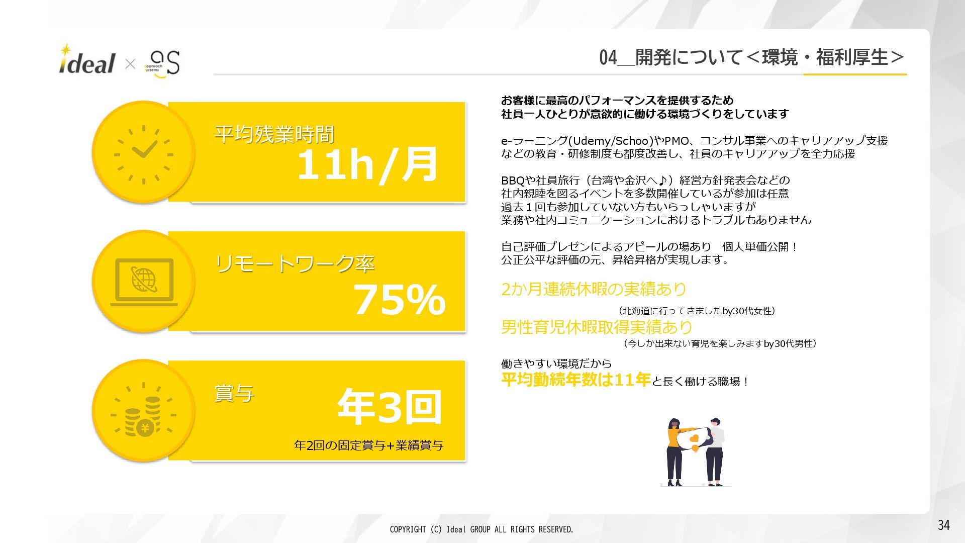 26. COPYRIGHT (C) Ideal GROUP ALL RIGHTS RESERVED. 34 04_開発について<環境・福利厚生> お客様に最高のパフォーマンスを提供するため