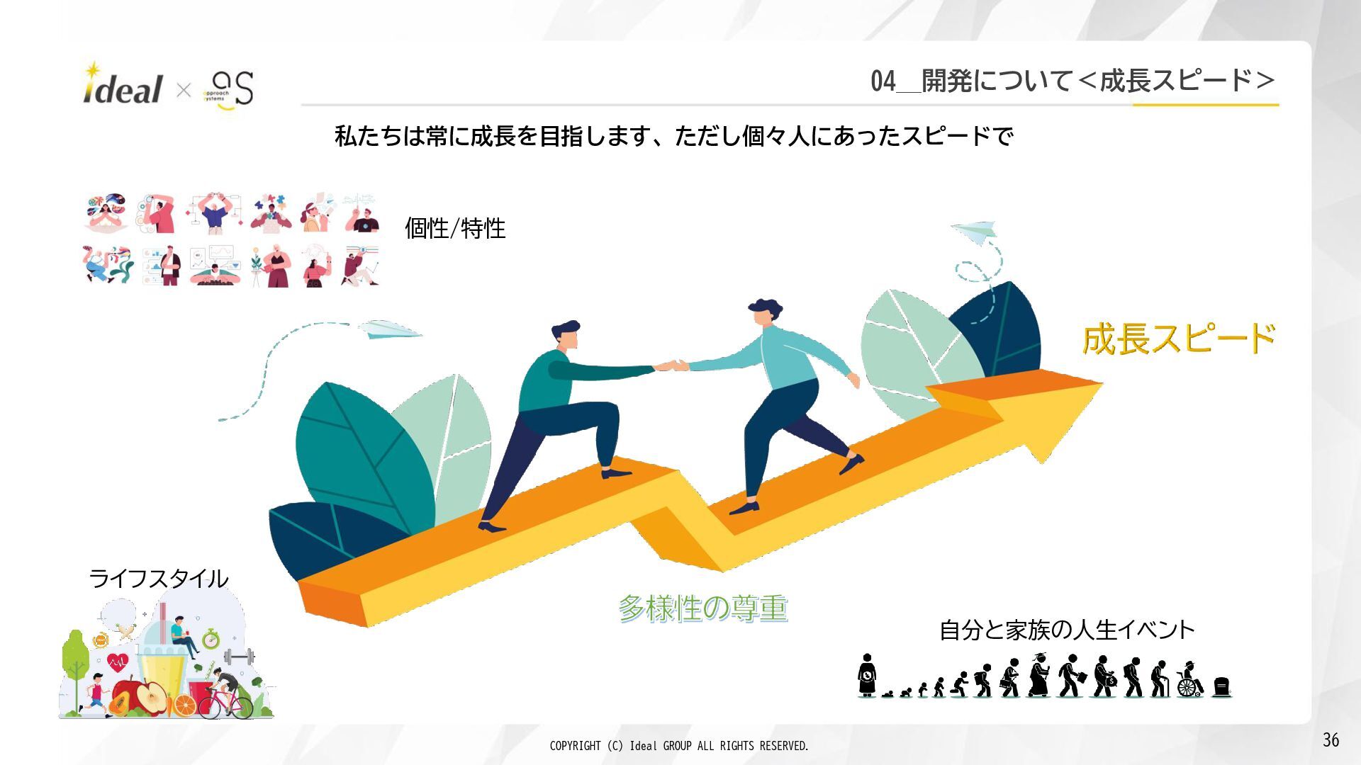 28. COPYRIGHT (C) Ideal GROUP ALL RIGHTS RESERVED. 04_開発について<成長スピード> 36 多様性の尊重