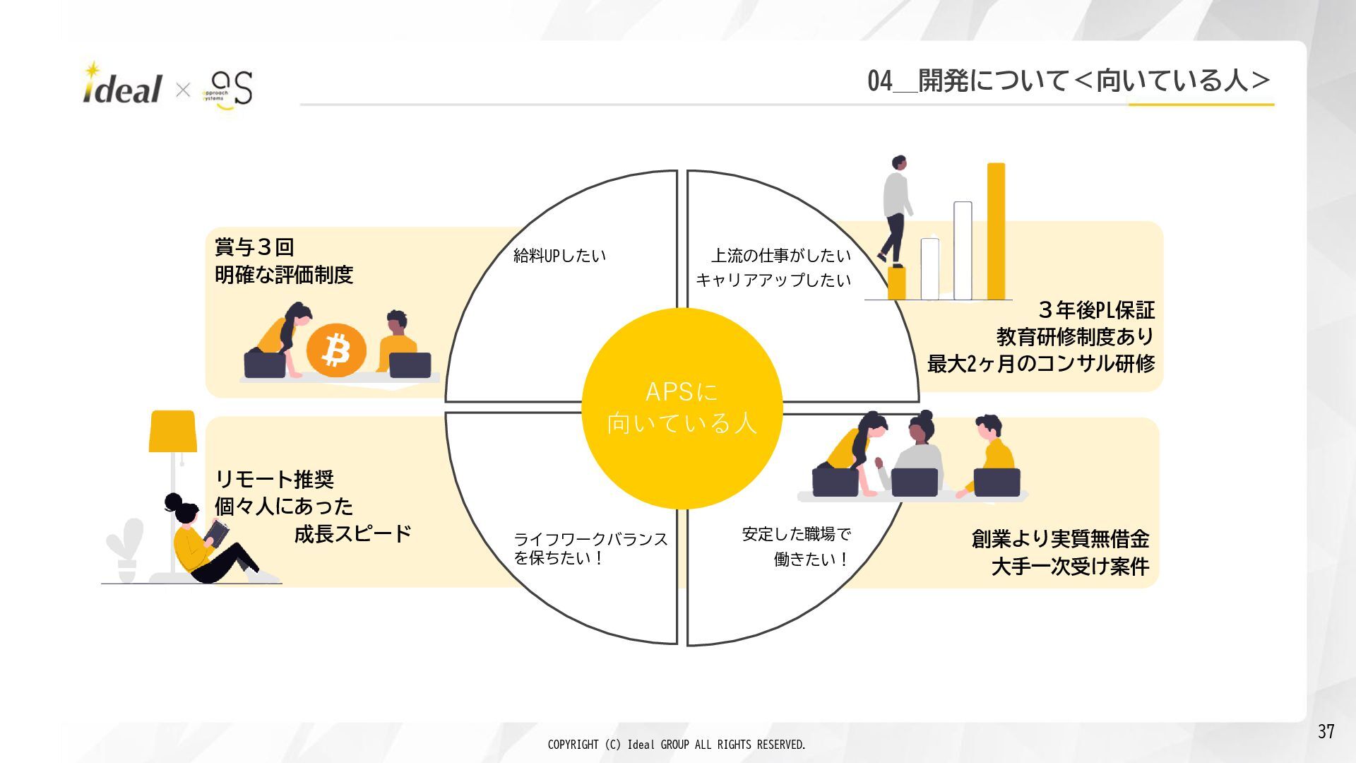 29. COPYRIGHT (C) Ideal GROUP ALL RIGHTS RESERVED. 37 04_開発について<向いている人> 創業より実質無借金