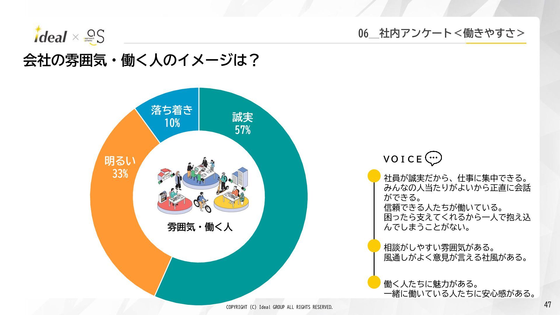 36. COPYRIGHT (C) Ideal GROUP ALL RIGHTS RESERVED. 47 会社の雰囲気・働く人のイメージは? 雰囲気・働く人