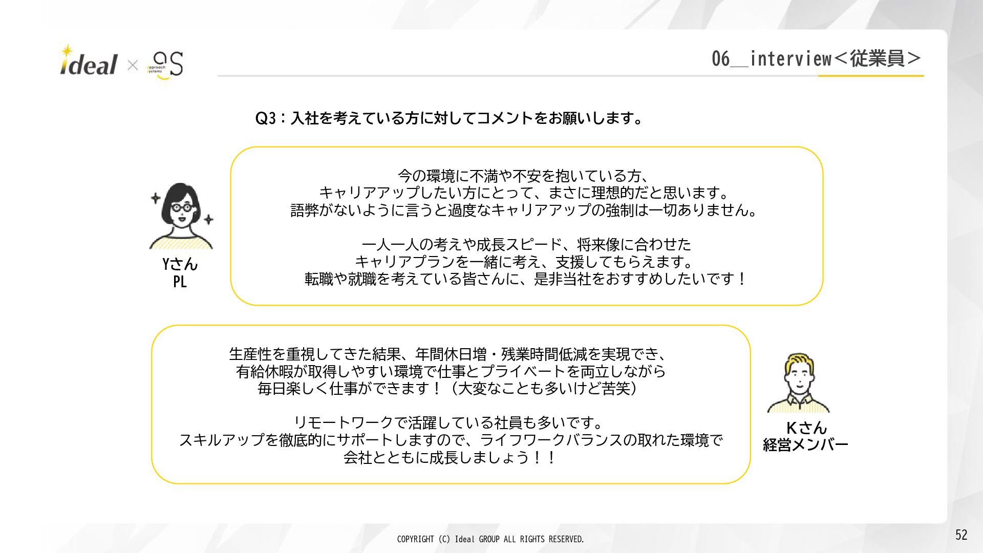 41. COPYRIGHT (C) Ideal GROUP ALL RIGHTS RESERVED. 52 06_interview<従業員> 今の環境に不満や不安を抱いている方、