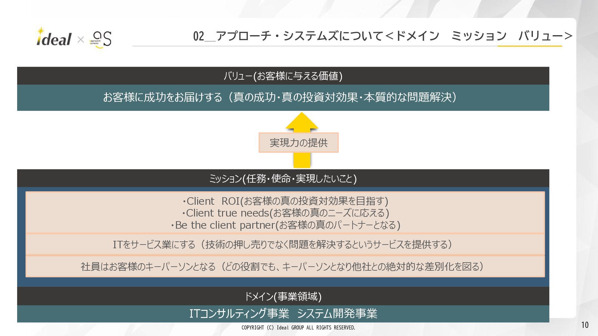 6. 02_アプローチ・システムズについて<ドメイン ミッション バリュー> 10 COPYRIGHT (C) Ideal GROUP ALL RIGHTS
