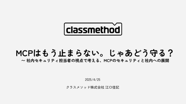 2025年4月現在のMCPのセキュリティの課題と、それを踏まえて社内への導入をどう考えるかについて、イベントで登壇した際の資料です。