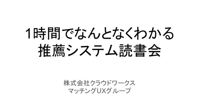 株式会社クラウドワークス マッチングUXグループ 1時間でなんとなくわかる 推薦システム読書会