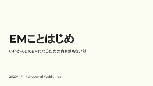 いいかんじのEMになるための身も蓋もない話 2020/11/11 #shuuumai Yoshiki Iida EMことはじめ