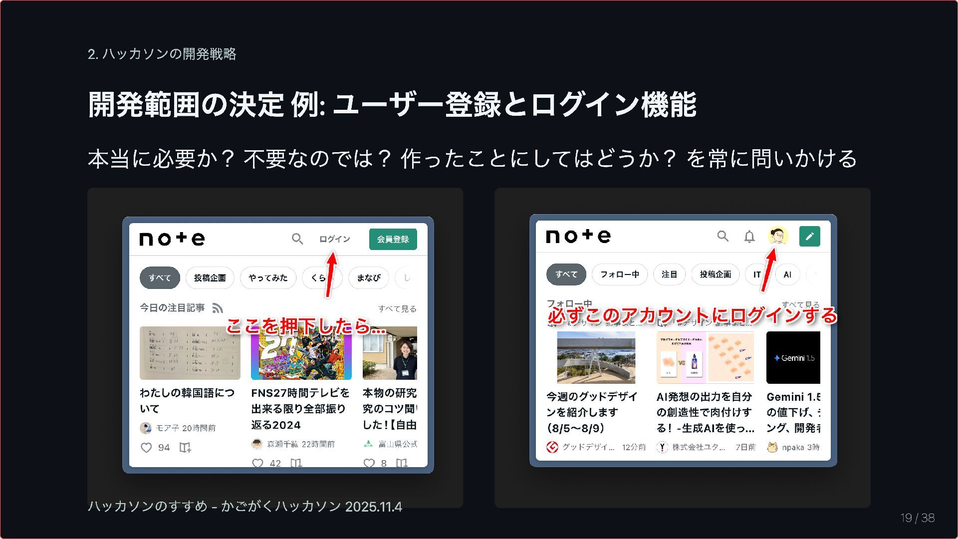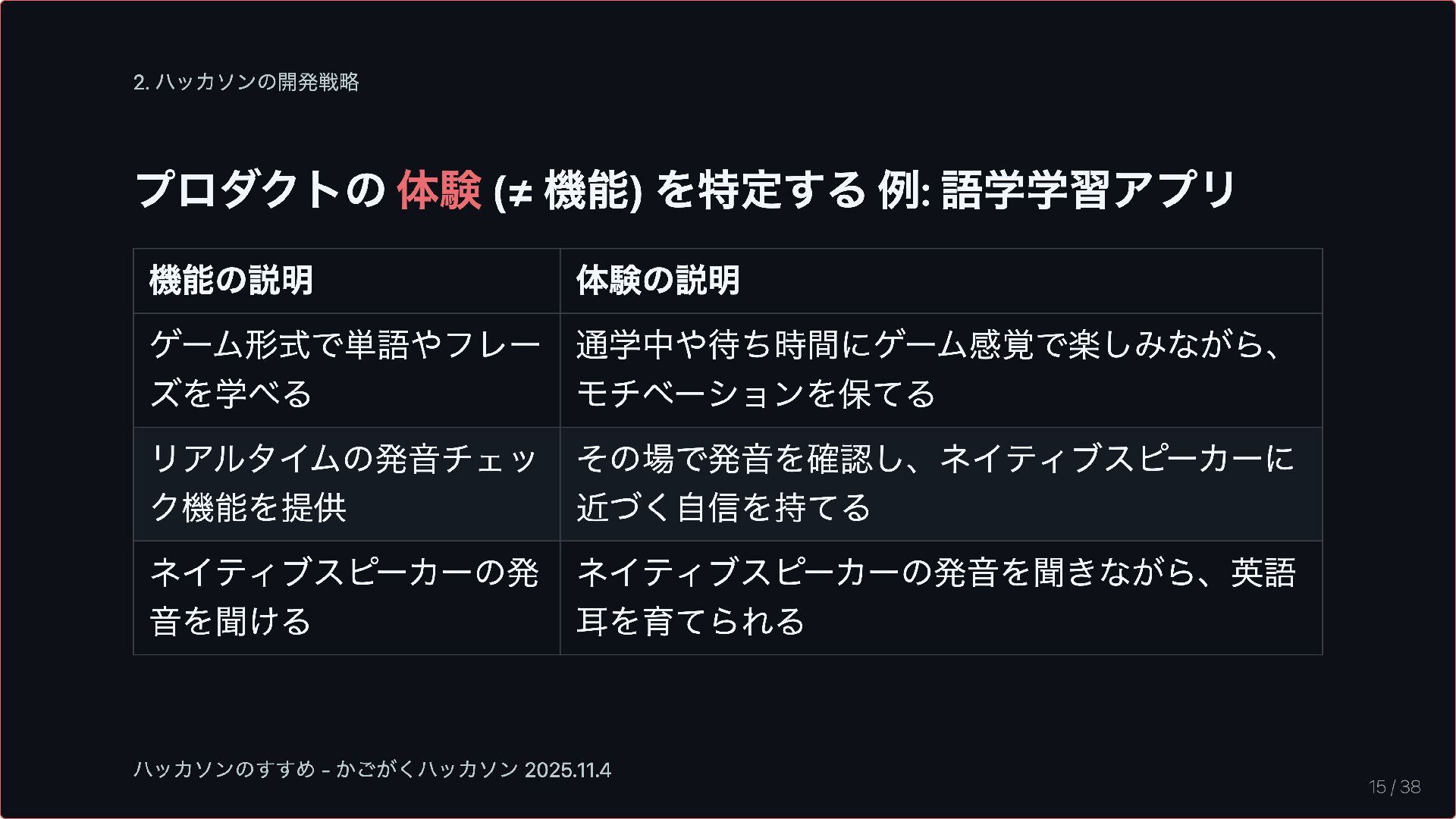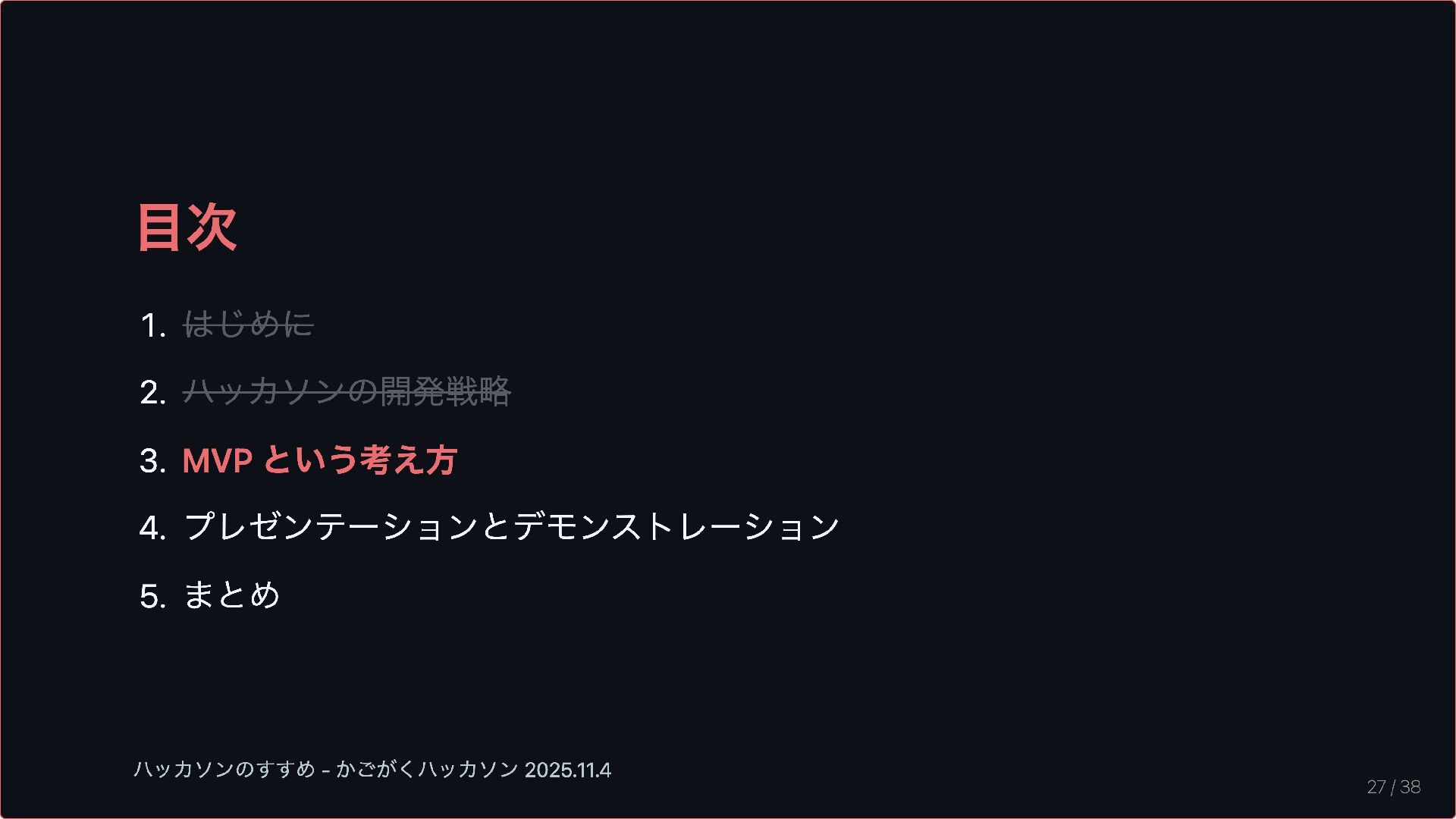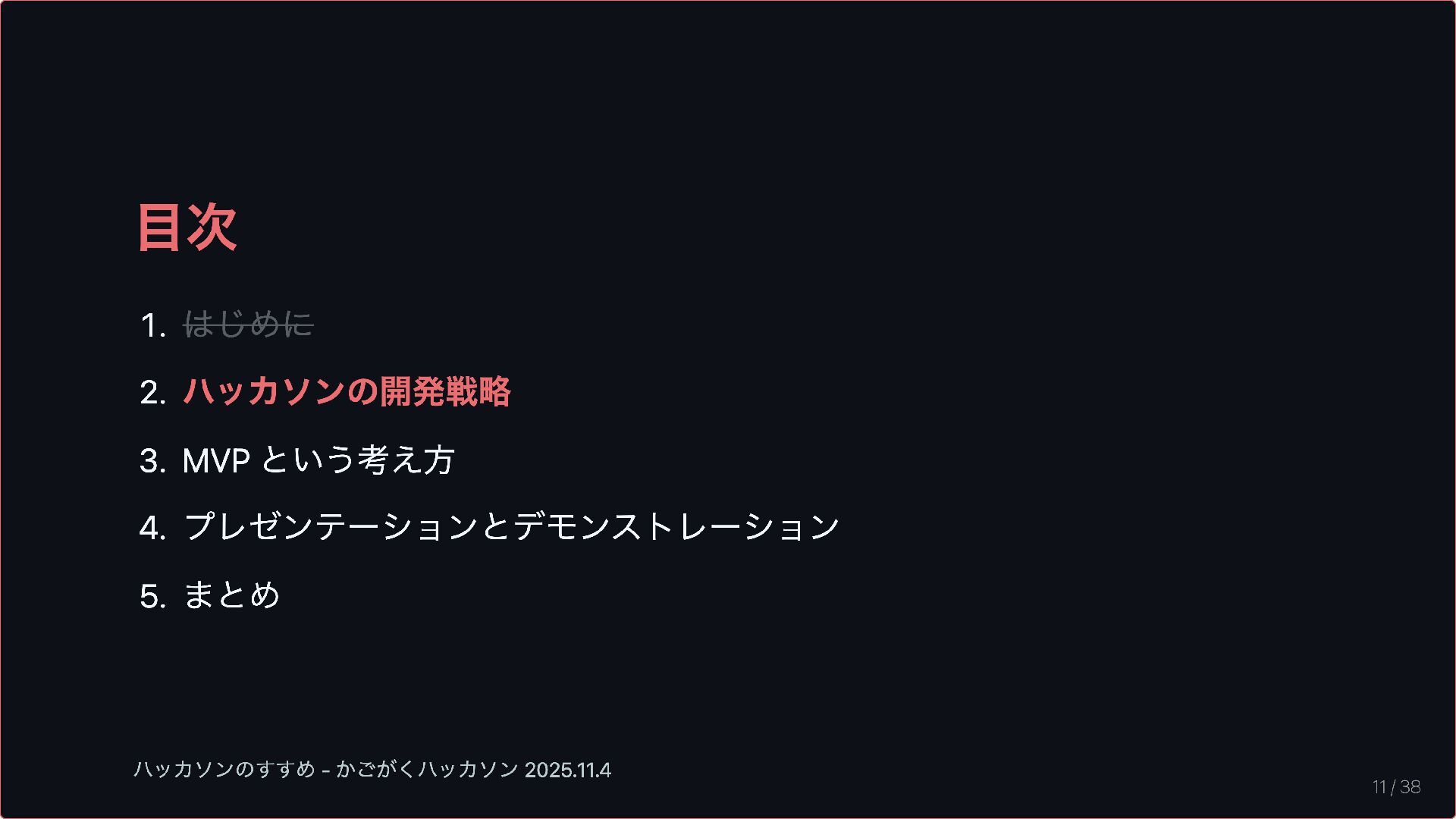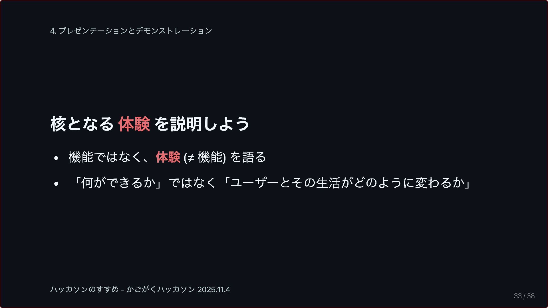 2025/10/04 (土) に開催した鹿児島学生向けハッカソン「かごがくハッカソン2025 byGMOペパボ 」の開会式後に開催したハッカソンのススメの資料です