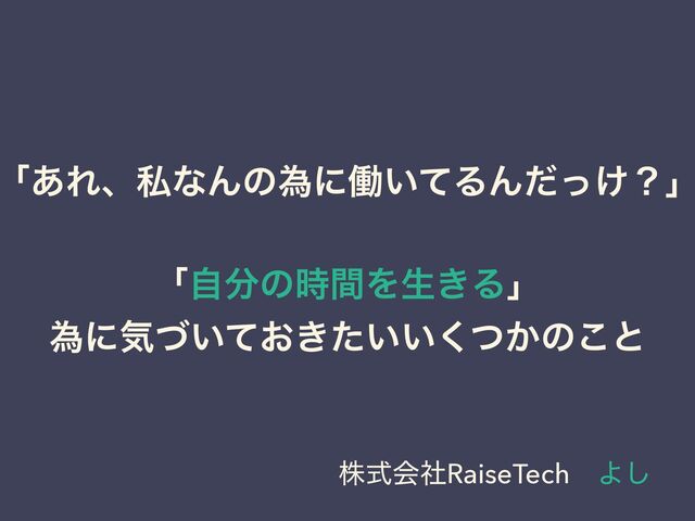 ʮࣗͷ࣌ؒΛੜ͖Δʯ ҝʹؾ͍͓͖͍͍͔ͮͯͨͭ͘ͷ͜ͱ גࣜձࣾRaiseTechɹΑ͠ ʮ͋ΕɺࢲͳΜͷҝʹಇ͍ͯΔΜ͚ͩͬʁʯ