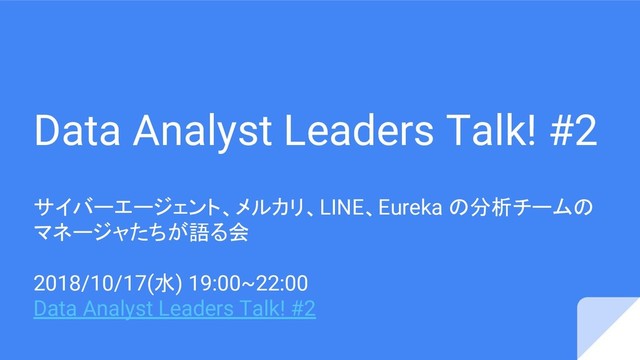 Data Analyst Leaders Talk! #2 サイバーエージェント、メルカリ、LINE、Eureka の分析チームの マネージャたちが語る会 2018/10/17(水) 19:00~22:00