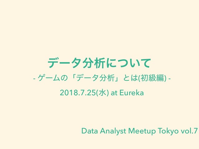 σʔλੳʹ͍ͭͯ - ήʔϜͷʮσʔλੳʯͱ(ॳڃฤ) - 2018.7.25(ਫ) at Eureka Data Analyst Meetup