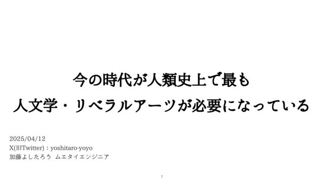 9 چ5XJUUFS ɿZPTIJUBSPZPZP Ճ౻Αͨ͠Ζ͏=ϜΤλΠΤϯδχΞ 今の時代が 人 類史上で最も 人 文