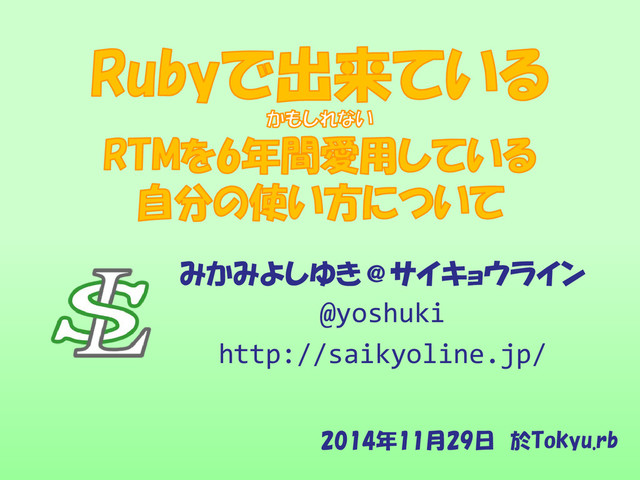 みかみよしゆき@サイキョウライン @yoshuki http://saikyoline.jp/ 2014年11月29日 於Tokyu.rb
