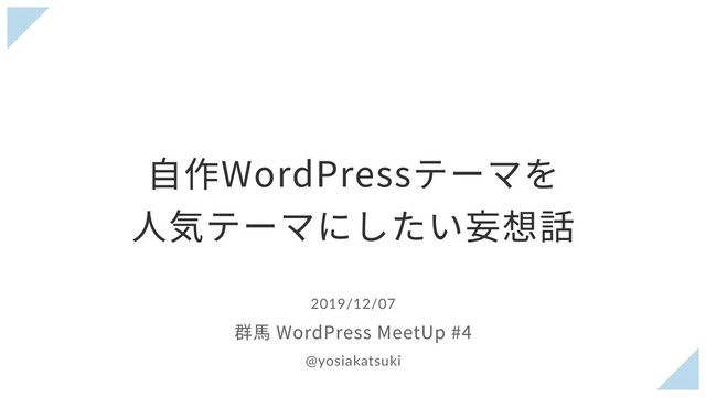 ⾃作WordPressテーマを ⼈気テーマにしたい妄想話 2019/12/07 @yosiakatsuki 群⾺ WordPress MeetUp #4