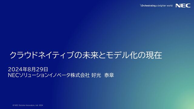 Yasuaki Yoshimitsu 所属・役職 経歴 NECソリューションイノベータ ソリューションサービス事業ライン 第三PFSI事業部 直属 シニアプロフェッショナル ミドルウェア開発 CLUSTERPRO開発(出向) シス基異動 インフラエンジニア 出身と居住地 趣味・好きなもの 性格・自己分析 DiSCスタイル「Di」 16Personalities 「主人公 ENFJ-A」 兵庫県 加古川市 東京都 府中市 神奈川県 川崎市 2013年から 兵庫県 神戸市 愛媛県 出身 ⚫ ブログ お酒飲みながら書いてます ⚫ カメラ プロフィール撮影中心 ⚫ 映画鑑賞 コナン聖地めぐり ⚫ ディズニー ファンタジースプリングス最高! ⚫ ランニング re:Invent 向け5kmラン ⚫ 英語 ELSAで発音矯正中 ⚫ JAWS-UG横浜支部 運営 武蔵小杉まで チャリで20分 AWS認定 2021-2024 Japan AWS Top Engineer 2022-2024 Japan AWS All Certifications Engineer NES コーポレートブログ 「高い志を持つ仲間を増やしたい」AWSの表彰を受けた5人が語るエンジニアとAWSの未来」