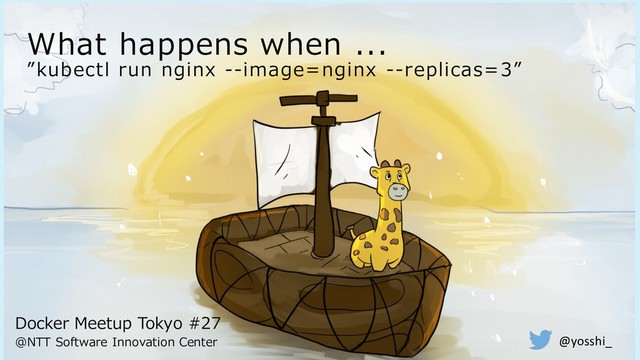 is DEPRECATED and will be removed in a future version. Use kubectl run --generator=run-pod/v1 or kubectl create instead. deployment.apps/nginx created › kubectl get pod NAME READY STATUS RESTARTS AGE nginx-7cdbd8cdc9-4nv6x 1/1 Running 0 72s nginx-7cdbd8cdc9-cskks 1/1 Running 0 72s nginx-7cdbd8cdc9-ctq99 1/1 Running 0 72s この間に 何が起こったのか? Captain Kubeと出会う Phippyが三体増える 参考<https://stackoverflow.com/questions/52890718/kubectl-run-is-deprecated-looking-for-alternative> 補⾜:今後は”run”ではなく、”create”が推奨