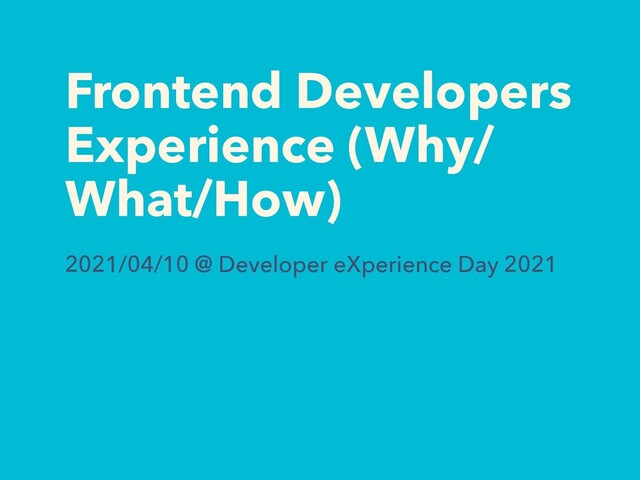 Frontend Developers Experience (Why/ What/How) 2021/04/10 @ Developer eXperience Day