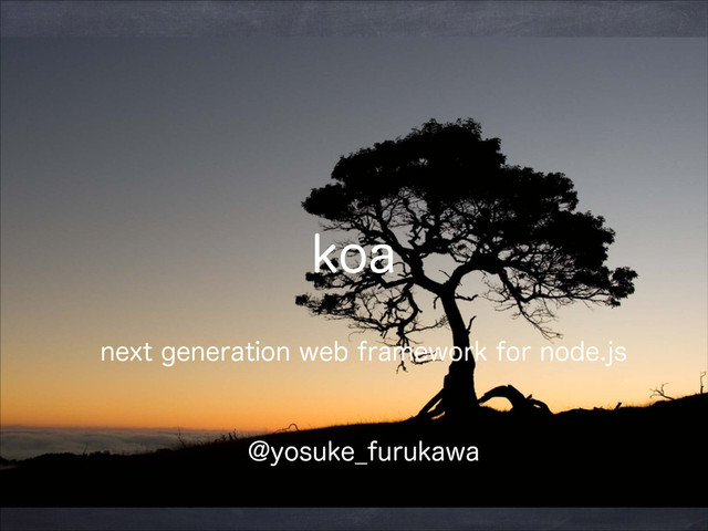 start = new Date;! yield next;! var ms = new Date - start;! this.set('X-Response-Time', ms + 'ms');! });! ! // response! ! app.use(function *(){! this.body = 'Hello World';! }); // Express! ! // response time! ! app.use(function(req, res, next){! var start = new Date;! res.on('header', function(){! var ms = new Date - start;! res.setHeader('X-Response-Time', ms + 'ms');! });! next();! }); ! ! // response! ! app.use(function(req, res, next){! res.send(200, "Hello World");! }); FYQSFTTWTLPB ϙΠϯτඇಉظॲཧΛ ಉظͬΆ͘ॻ͚Δͱ͜Ζ BWPJEDBMMCBDLIFMM