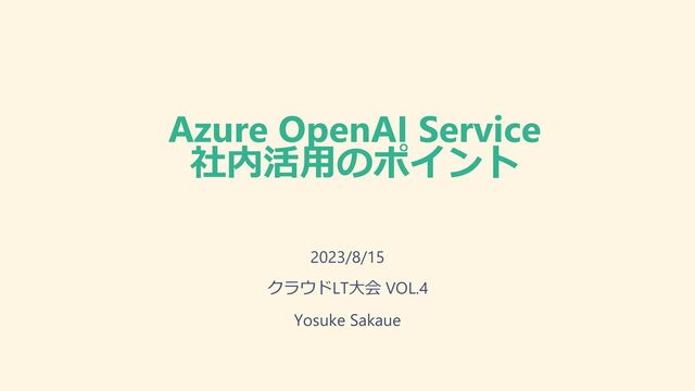 Azure OpenAI Service 社内活用のポイント 2023/8/15 クラウドLT大会 VOL.4 Yosuke Sakaue