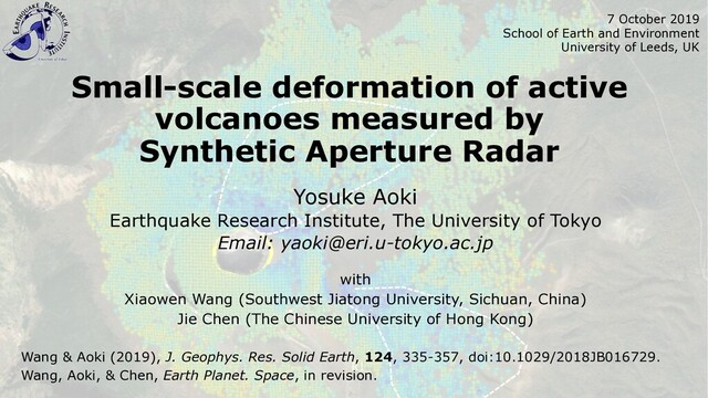 Aperture Radar Yosuke Aoki Earthquake Research Institute, The University of Tokyo Email: [email protected] with Xiaowen Wang (Southwest Jiatong University, Sichuan, China) Jie Chen (The Chinese University of Hong Kong) Wang & Aoki (2019), J. Geophys. Res. Solid Earth, 124, 335-357, doi:10.1029/2018JB016729. Wang, Aoki, & Chen, Earth Planet. Space, in revision. 7 October 2019 School of Earth and Environment University of Leeds, UK