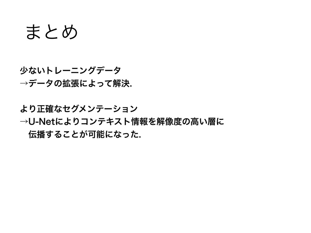 ·ͱΊ গͳ͍τϨʔχϯάσʔλ ˠσʔλͷ֦ுʹΑͬͯղܾ ΑΓਖ਼֬ͳηάϝϯςʔγϣϯ ˠ6/FUʹΑΓίϯςΩετใΛղ૾ͷߴ͍ʹ ɹ͢Δ͜ͱ͕Մೳʹͳͬͨ