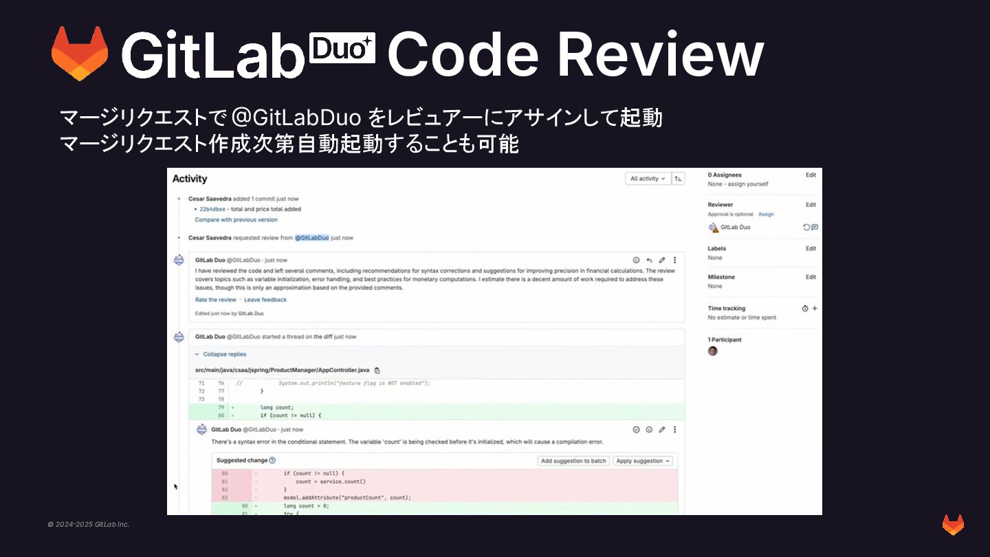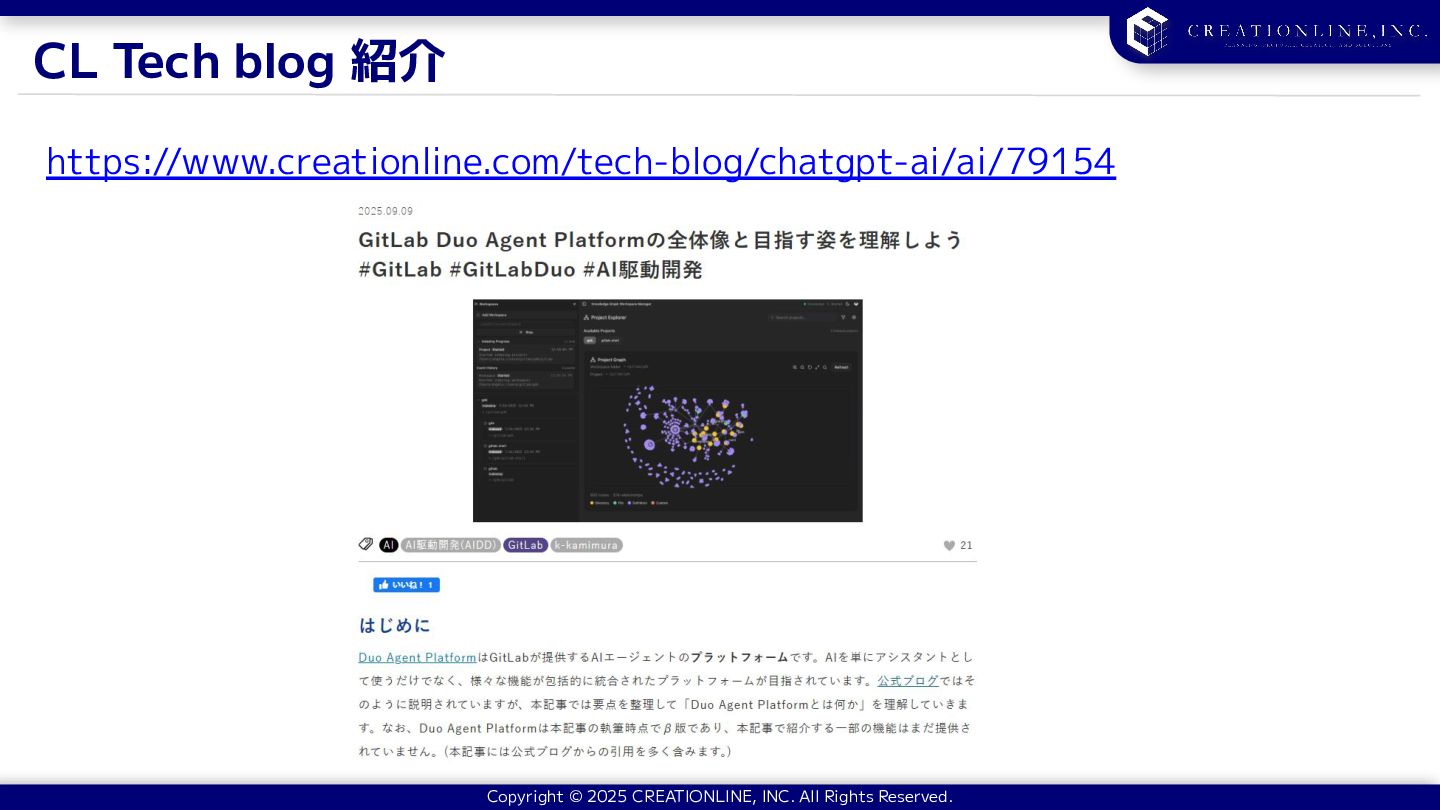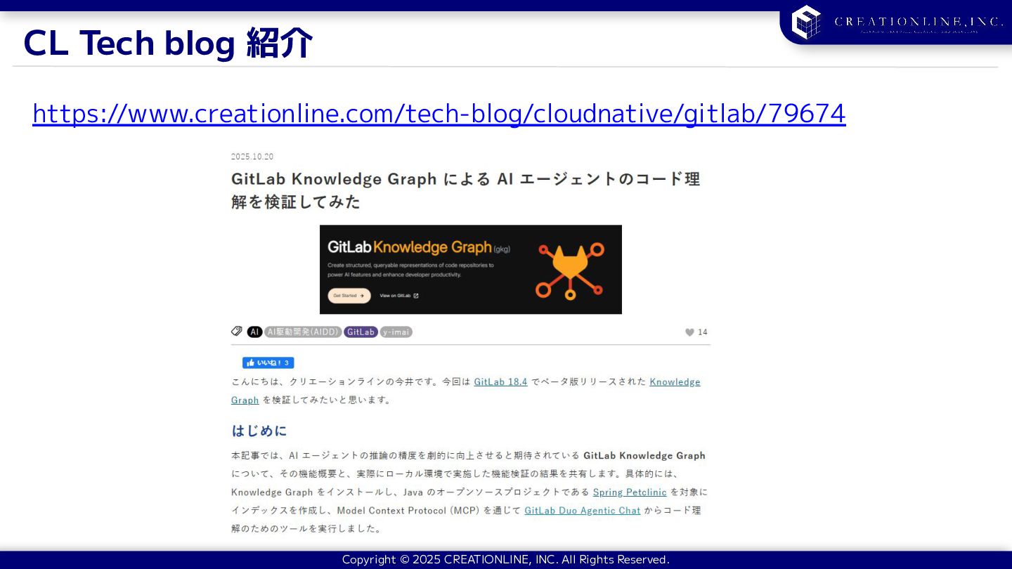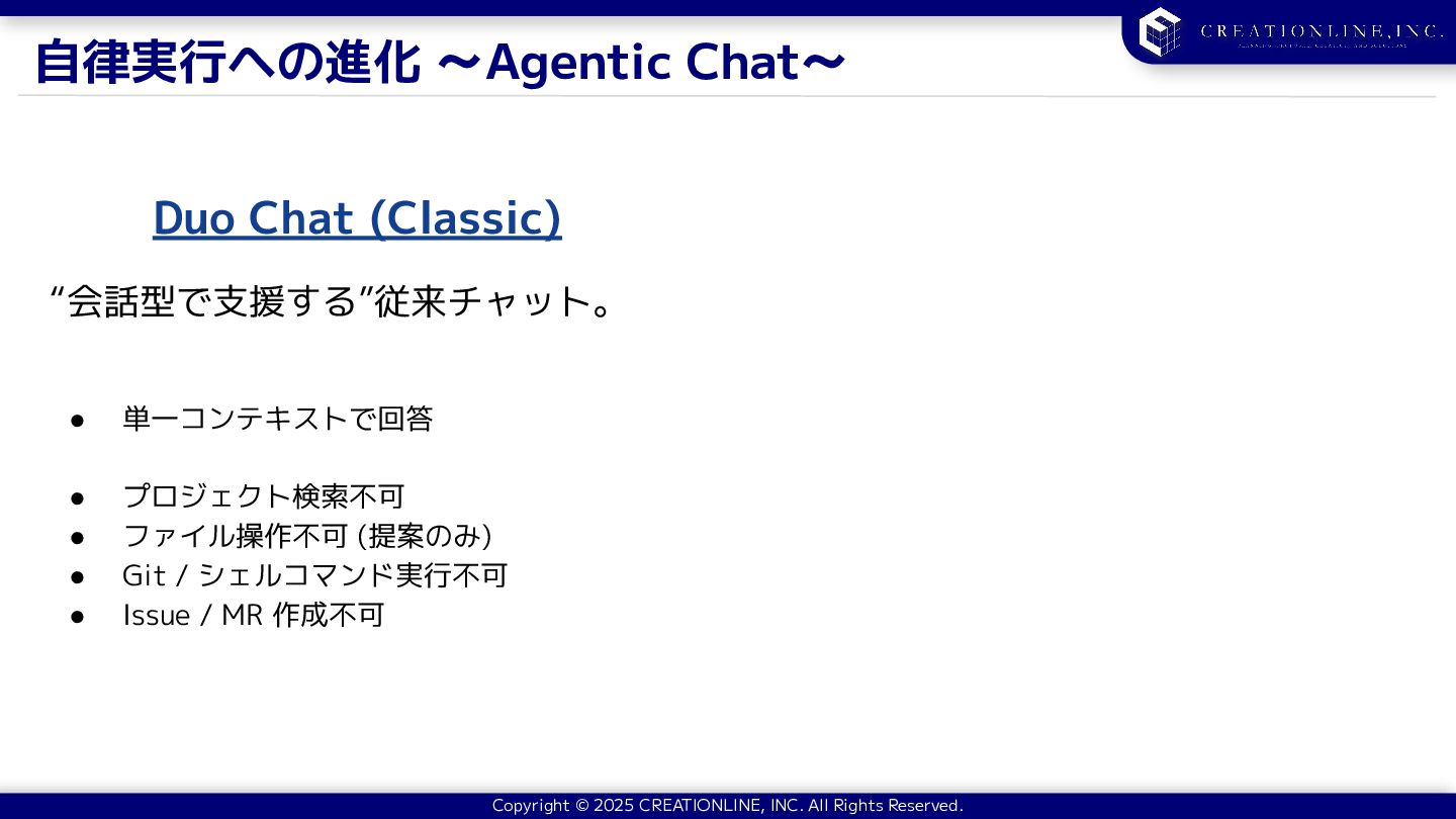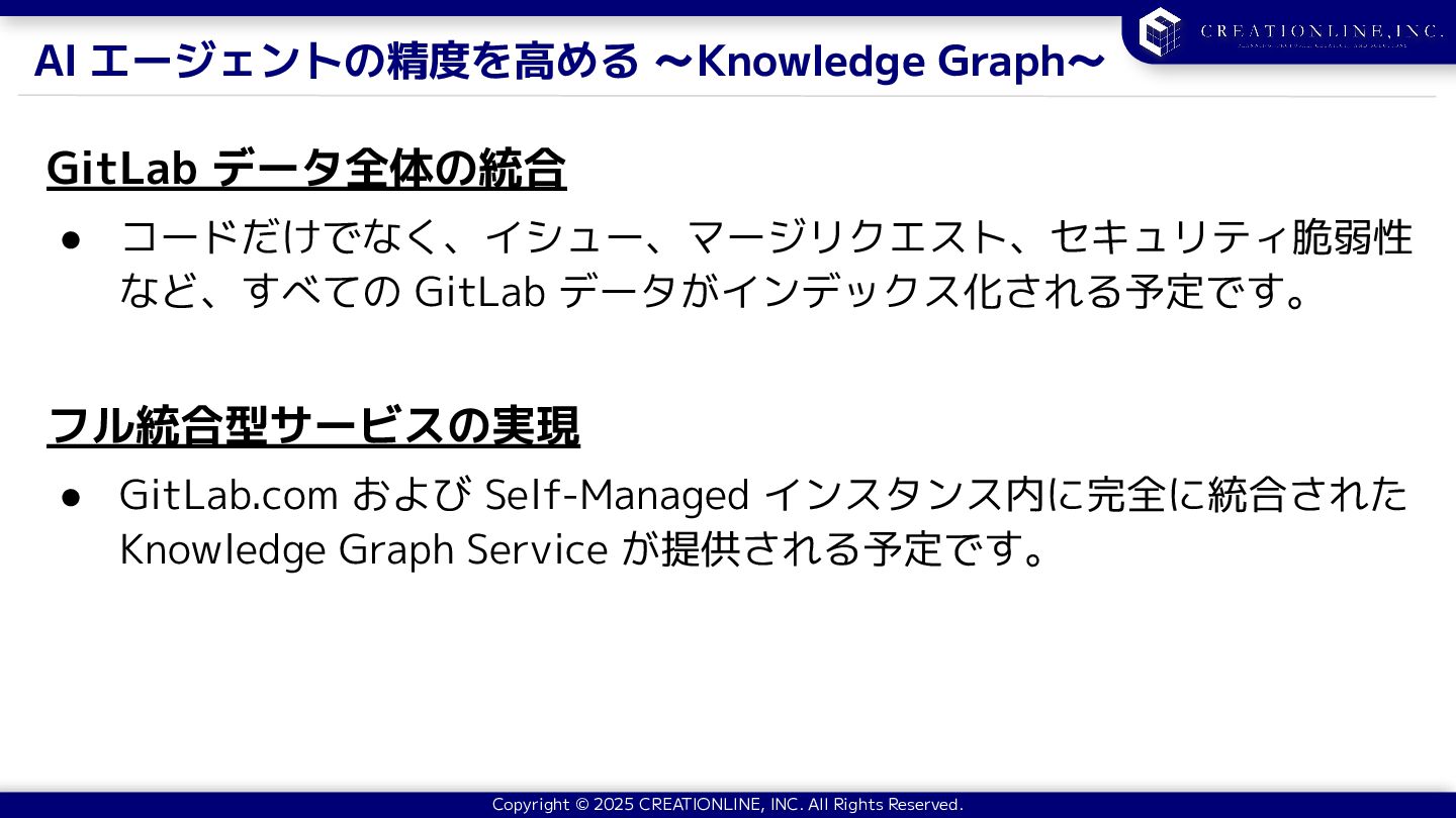 機能 リリース段階 GitLabプラン Duoアドオン コンテキスト提供 Knowledge Graph ベータ 全プラン 不要 Deep Research / Semantic Search 未提供 – – エージェント とフロー エージェント Software Development Agent Planner Agent ベータ Premium + Core/Pro/Enterprise Security Analyst Agent ベータ Ultimate Core/Pro/Enterprise フロー Software Development Flow(IDE) Issue-to-MR Flow(UI) Convert CI File Flow(UI) ベータ Premium + Core/Pro/Enterprise Fix Failed Pipelines Flow(UI) 実験的 Premium + Core/Pro/Enterprise AIカタログ AI Catalog 実験的 Premium + Core/Pro/Enterprise 外部連携 MCP MCPクライアント ベータ Premium + 不要 MCPサーバー 実験的 Premium + 不要 CLIエージェント統合 Anthropic Claude / OpenAI Codex / Opencode / Google Gemini CLI 実験的 Ultimate Enterprise Amazon Q 実験的 Ultimate Duo with Amazon Q その他 ガバナンス モデル選択 一般提供 Premium + Core/Pro/Enterprise Duo コンテキスト除外 ベータ Premium + Pro/Enterprise Agentic Chat エンドユーザーのモデル選択 ベータ Premium + Core/Pro/Enterprise GitLab Web UI Visual Studio Code JetBrains IDEs Visual Studio ベータ Premium + Core/Pro/Enterprise Eclipse Neovim 未提供 – –