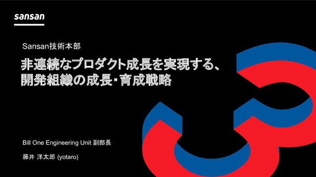 ■登壇概要 タイトル:非連続なプロダクト成長を実現する、開発組織の成長・育成戦略 登壇者:技術本部 Bill One Engineering Unit 副部長 藤井 洋太郎