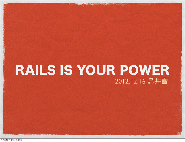 େࣄͳ͜ͱ ཧܥ͡Όͳͯ͘ɺࣗͰ8FCαʔϏεΛͭ͘ Δ͜ͱͰ͖ΔΑ ʢྫɿ౦ژʹ͓ॅ·͍ͷ5͞Μʣ 3BJMT͋ͳͨͷྗʹͳΔ ͋ͳͨΘͨͨͪ͠ͷྗʹͳΔ 1212݄15༵