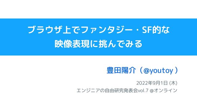 ブラウザ上でファンタジー・SF的な 映像表現に挑んでみる 2022年9月1日 (木) エンジニアの自由研究発表会vol.7 @オンライン 豊田陽介( ) @youtoy