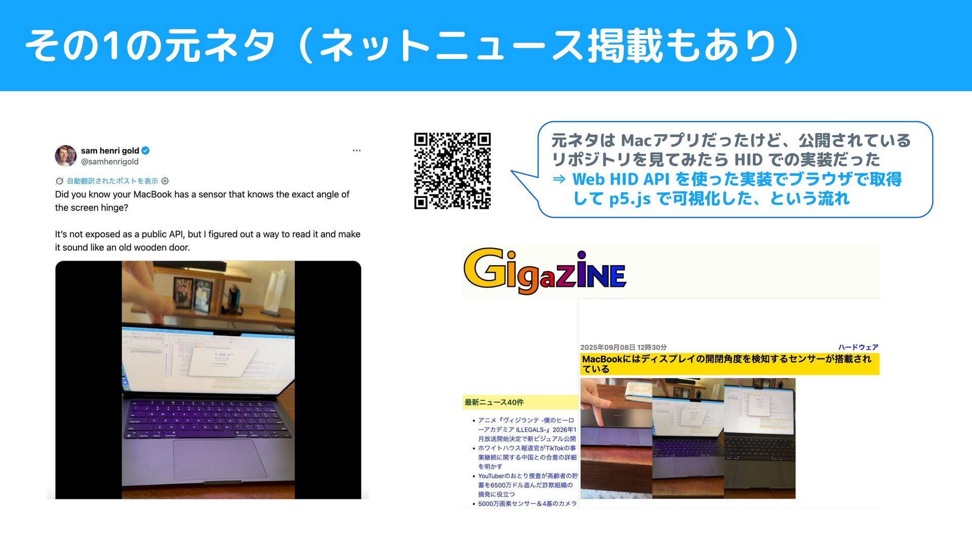 その1の元ネタ(ネットニュース掲載もあり) 元ネタは Macアプリだったけど、公開されている リポジトリを見てみたら HID での実装だった ⇒ Web HID API