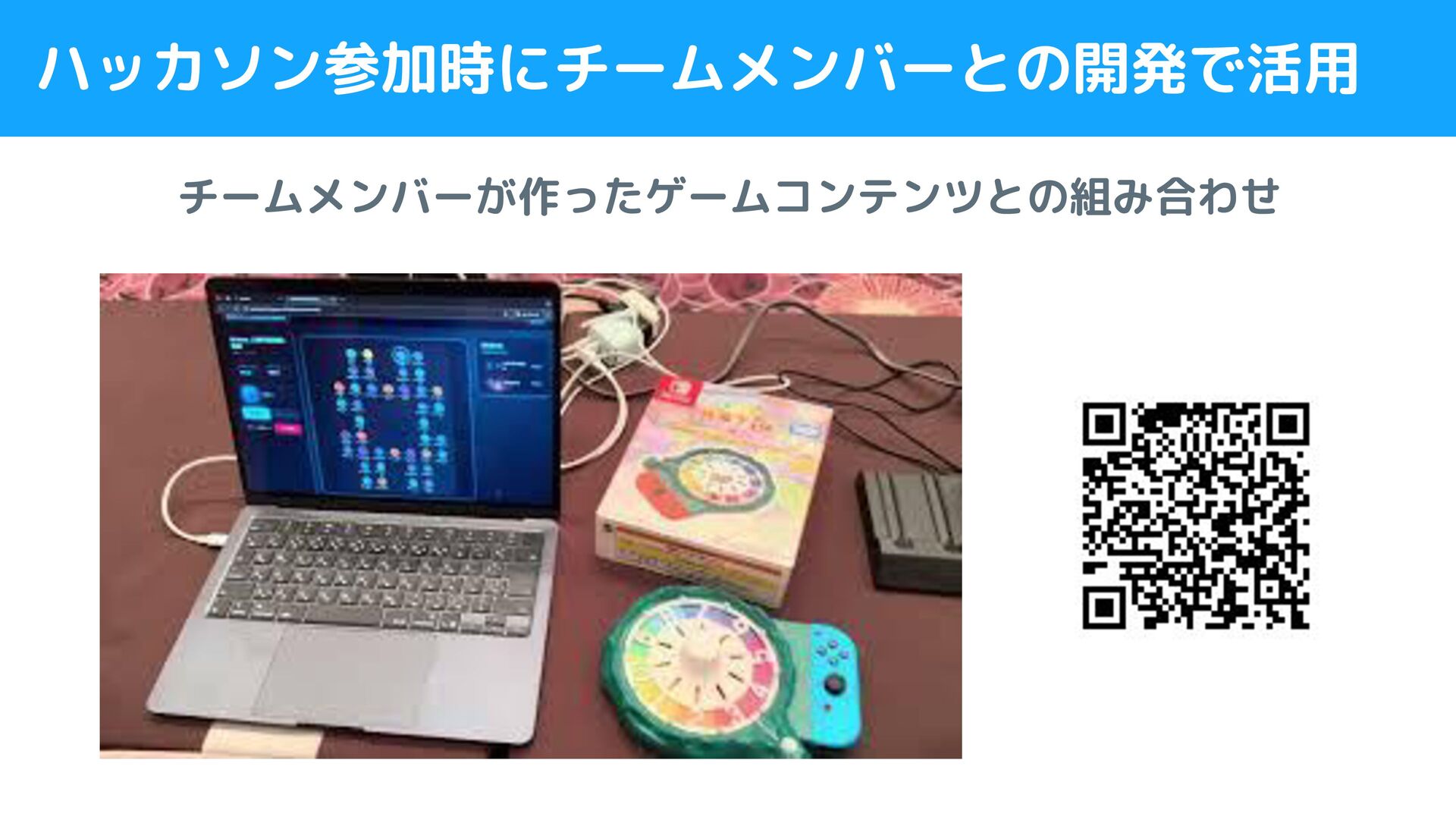 ハッカソン参加時にチームメンバーとの開発で活用 チームメンバーが作ったゲームコンテンツとの組み合わせ