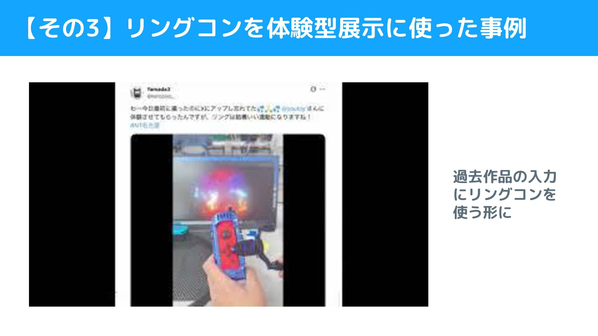 【その3】リングコンを体験型展示に使った事例 過去作品の入力 にリングコンを 使う形に