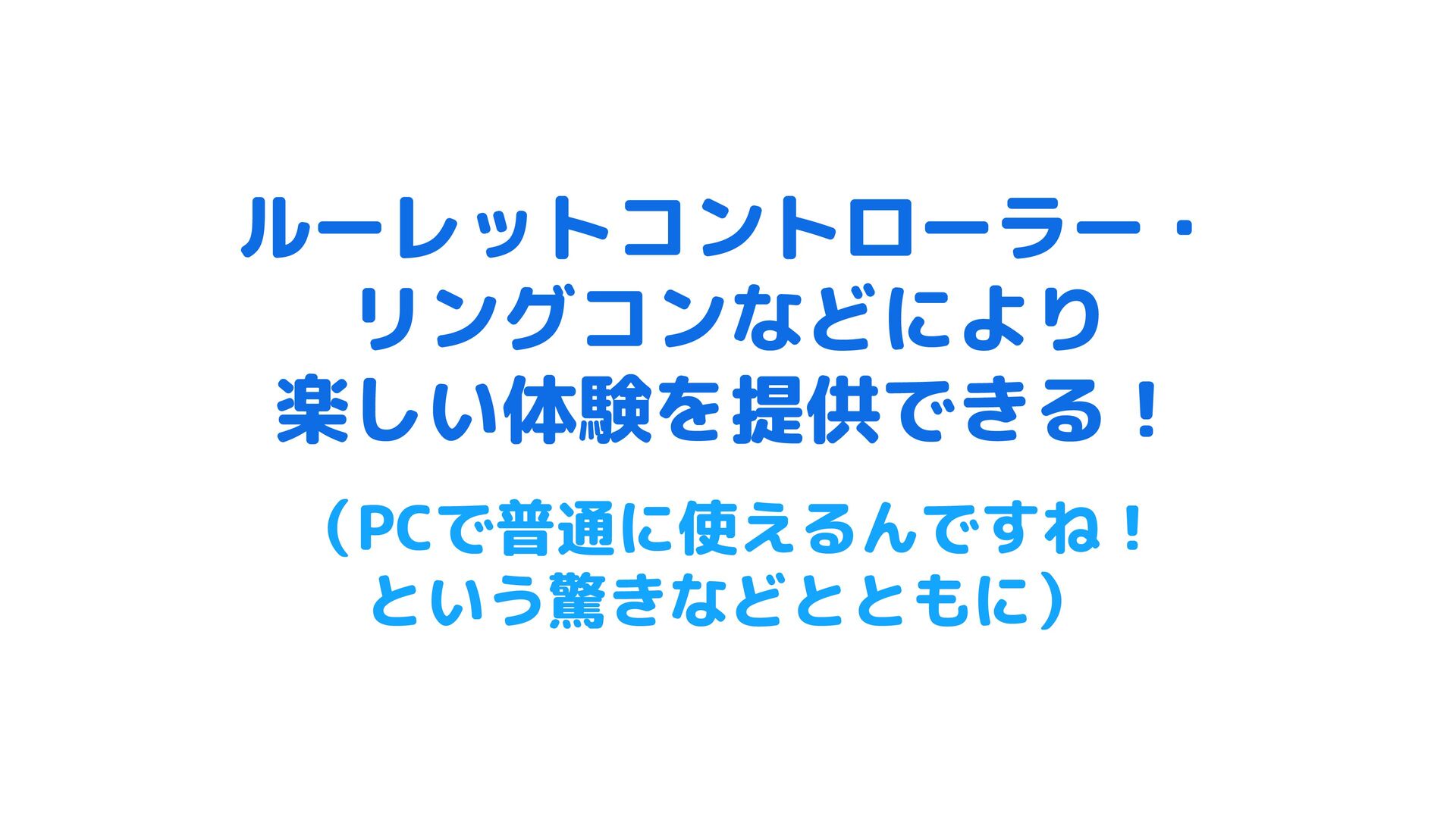 ルーレットコントローラー・ リングコンなどにより 楽しい体験を提供できる! (PCで普通に使えるんですね! という驚きなどとともに)