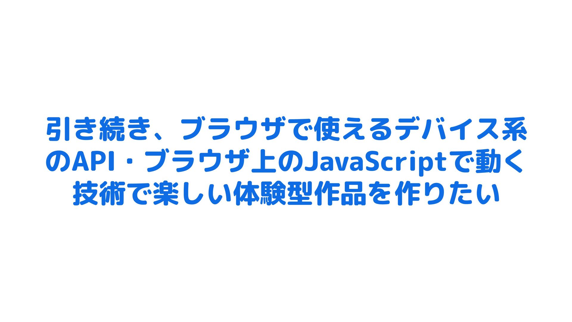 引き続き、ブラウザで使えるデバイス系 のAPI・ブラウザ上のJavaScriptで動く 技術で楽しい体験型作品を作りたい