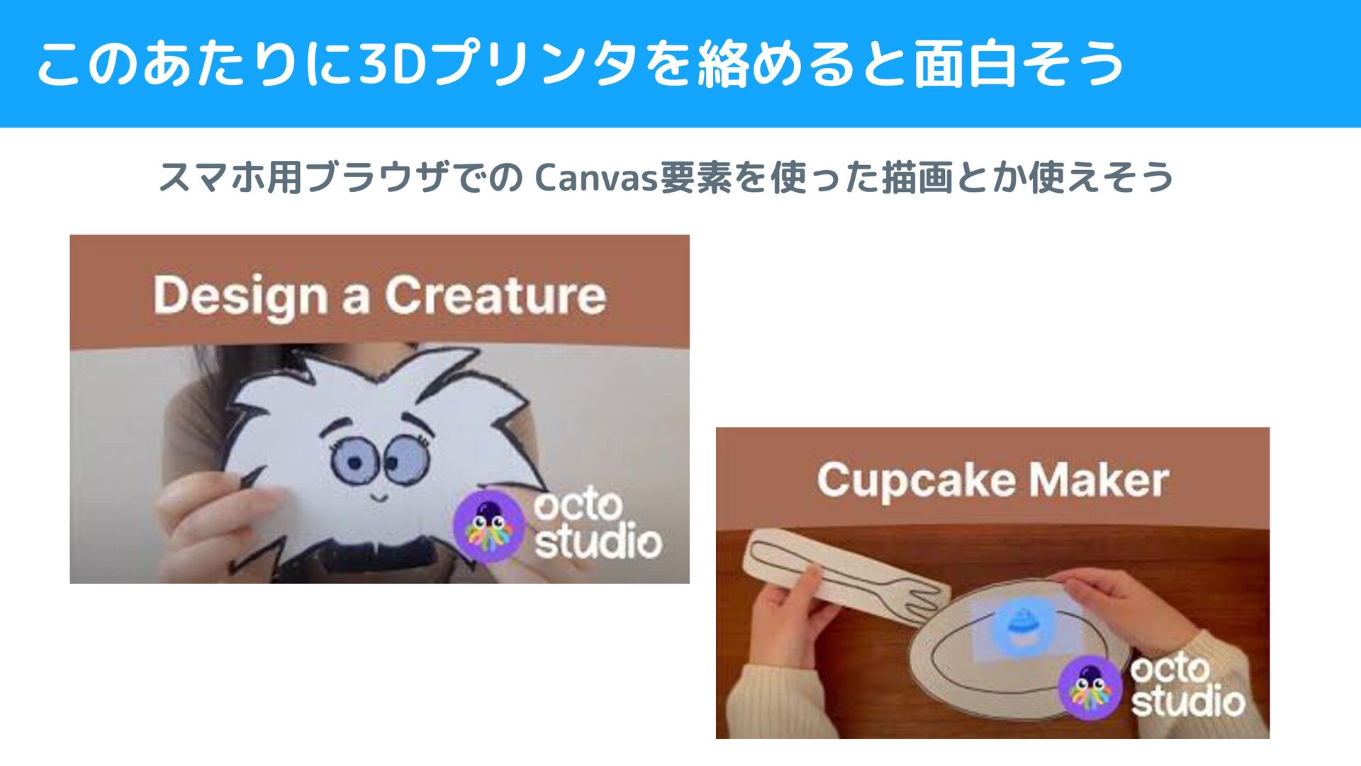 このあたりに3Dプリンタを絡めると面白そう スマホ用ブラウザでの Canvas要素を使った描画とか使えそう