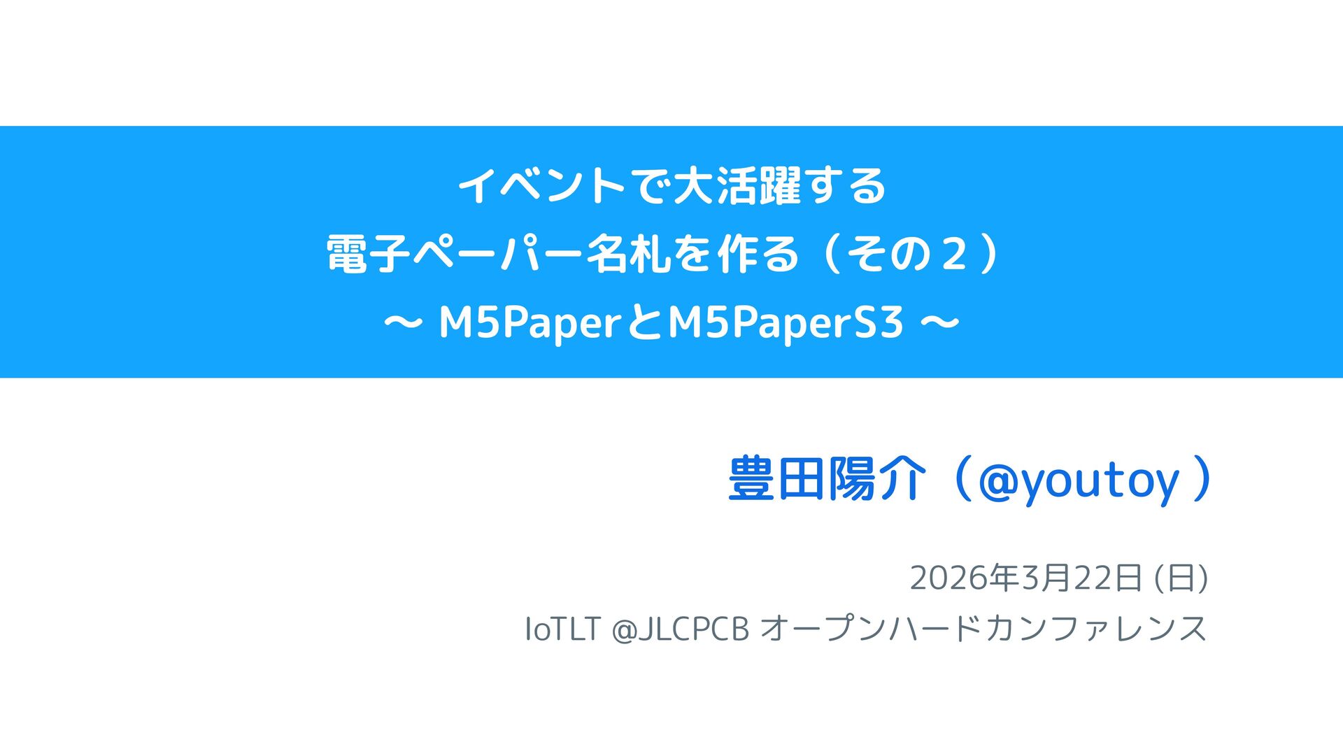 イベントで大活躍する電子ペーパー名札を作る(その2) 〜 M5PaperとM5PaperS3 〜 / IoTLT @ JLCPCB オープンハードカンファレンス