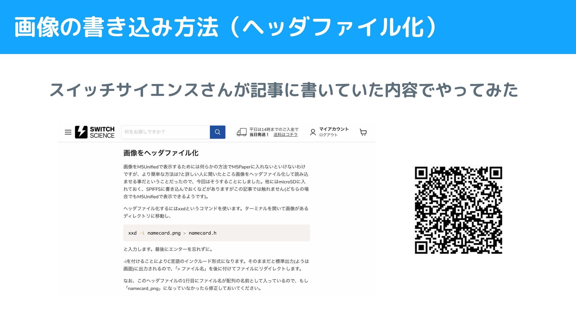 画像の書き込み方法(ヘッダファイル化) スイッチサイエンスさんが記事に書いていた内容でやってみた
