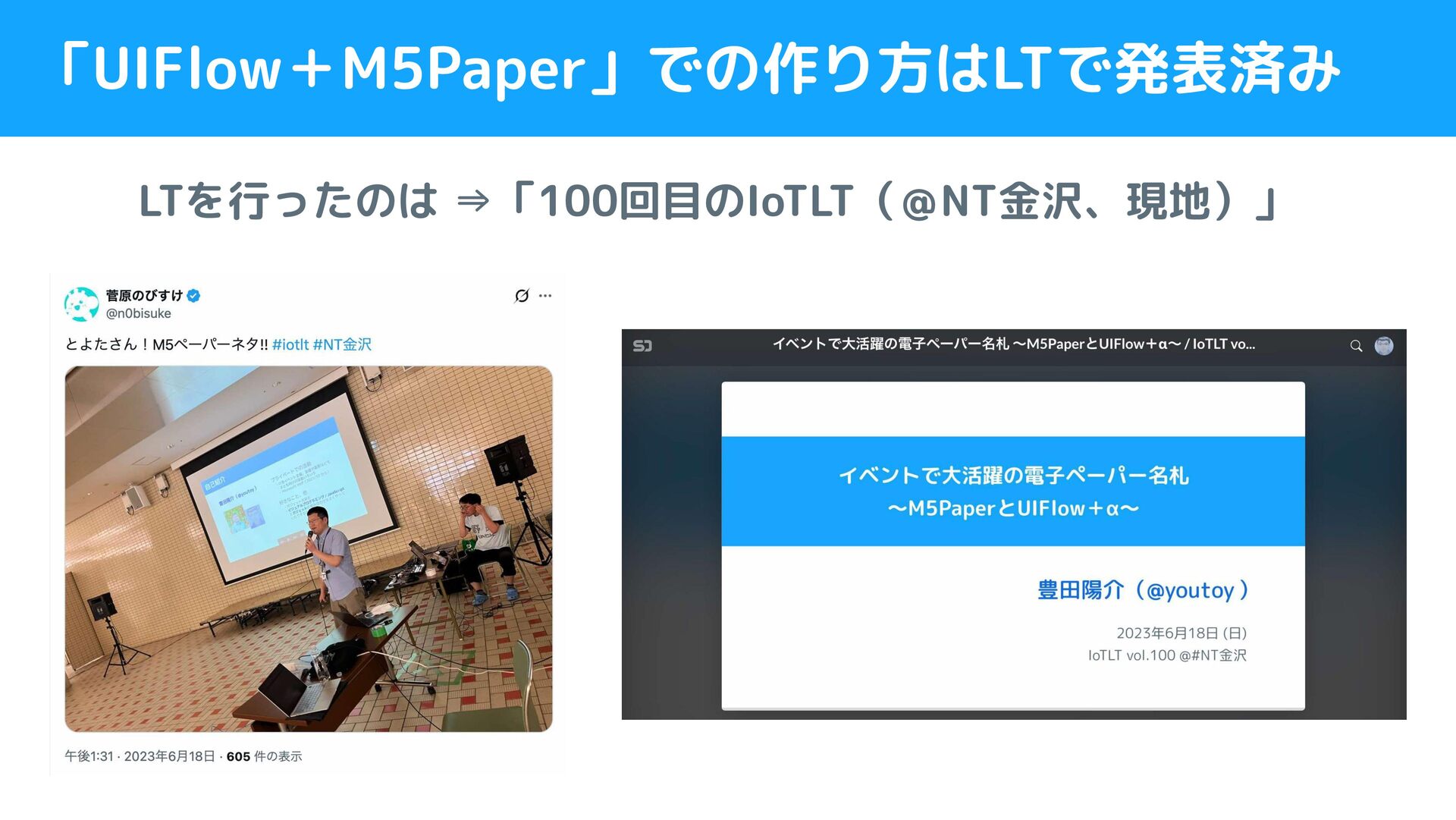 「UIFlow+M5Paper」での作り方はLTで発表済み LTを行ったのは ⇒「100回目のIoTLT(@NT金沢、現地)」