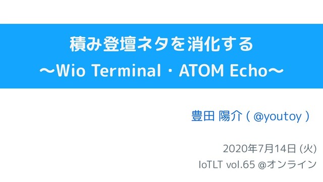 service 2)FactoryTest 3)Recoder&Replay 4)StreamHttpMP3 IoTLT vol.65 @オンライン 公式のクイックスタートの内容 https://docs.m5stack.com/#/en/quick_start/atom/atom_echo_quick_start スイッチサイエンスさんの以下のページに、日本語の解説あり http://pages.switch-science.com/m5monthlyupdate/202006extra/ これをメイン利用